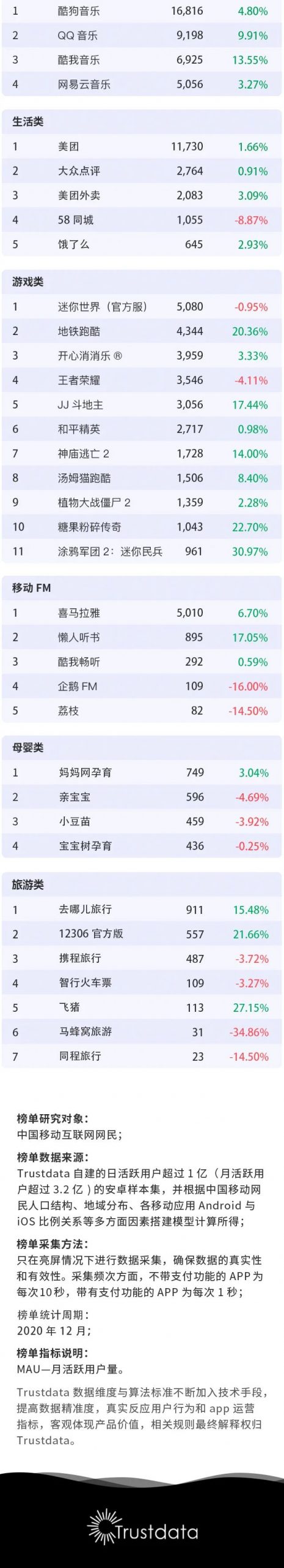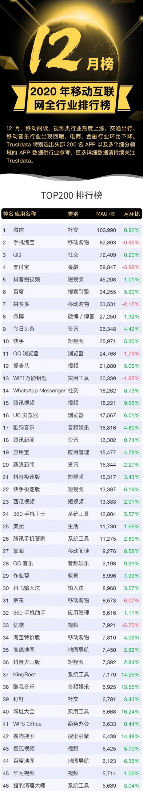 Trustdata:2020年12月移动互联网全行业排行榜 更多阅读:Trustdata:2019年7月移动互联网全行业排行榜Trustdata:2020年2月移动互联网全行业排行榜Trustdata:2020年7月移动互联网全行业排行榜Trustdata:2020年10月移动互联网全行业排行榜Trustdata:2019年11月移动互联网全行业排行榜Trustdata:2019年10月移动互联网全行业排行榜Trustdata:2019年12月移动互联网全行业排行榜Trustdata:2020年6月移动互联网全行业排行榜Trustdata:2022年10月移动互联网全行业排行榜Trustdata:2020年8月移动互联网全行业排行榜Trustdata:2021年6月移动互联网全行业排行榜Trustdata:2021年5月移动互联网全行业排行榜Trustdata:2020年11月移动互联网全行业排行榜Trustdata:2021年4月移动互联网全行业排行榜Trustdata:2020年3月移动互联网全行业排行榜
