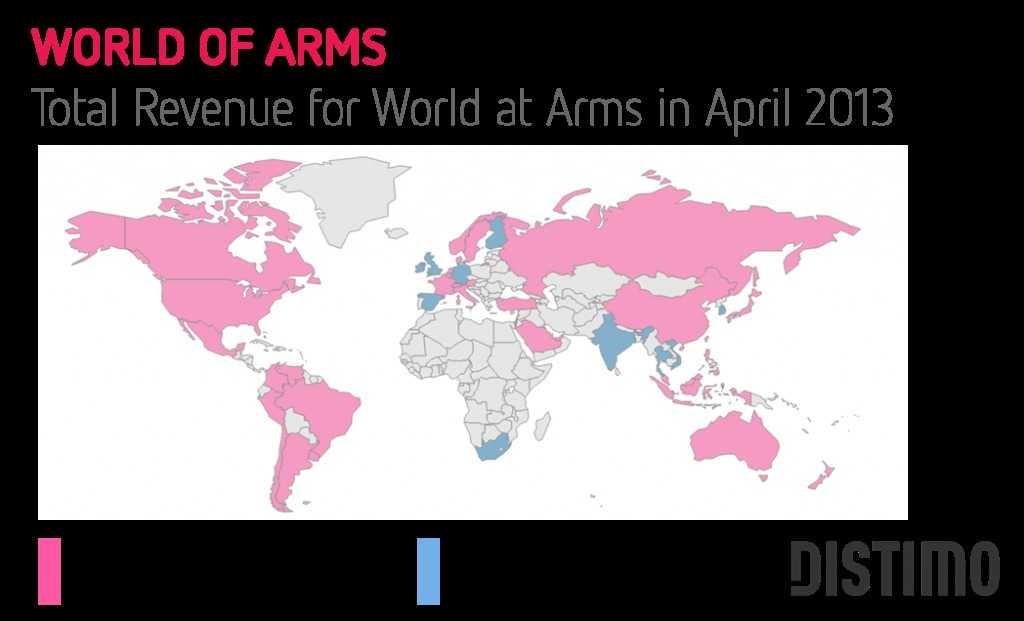 Gameloft旗下免费游戏《World of Arms》今年4月份在英国、德国、西班牙、芬兰、印度、韩国、泰国、越南、以色列、爱尔兰和香港地区的Google Play收益较为可观。