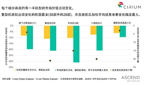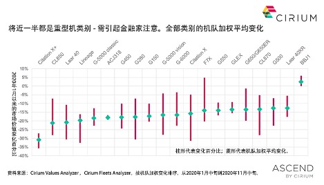 市场价值变化 – 2020年1月以来受影响最严重的20大商务机机型