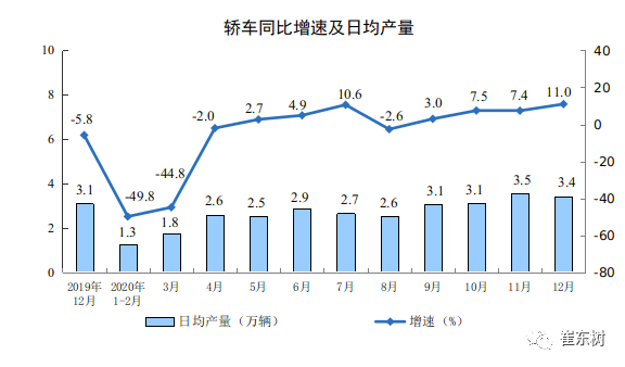 今年12月的汽车生产280万台增长7%是较大的增幅,其中轿车的增速11%,也是很好的高增长。