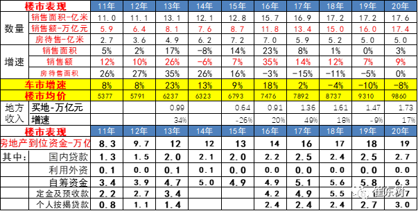 16-19年楼市火爆影响很大,后期逐步降温对车市的促进较好。。 2020年,商品房销售面积176086万平方米,比上年增长2.6%,上年为下降0.1%。其中,住宅销售面积增长3.2%,住宅销售额增长10.8%,办公楼销售额下降5.3%,商业营业用房销售额下降11.2%。