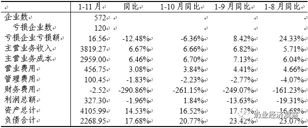 根据国家统计局数据,2020年1-11月进入统计范围的企业有572家,比1-10月数据增加4家,其中亏损企业120家,比1-10月数据减少13家,亏损比例21.0%。国家统计局统计的企业是年销售额2000万元以上的企业,进入统计范围的企业增加,说明更多的企业经营在好转。