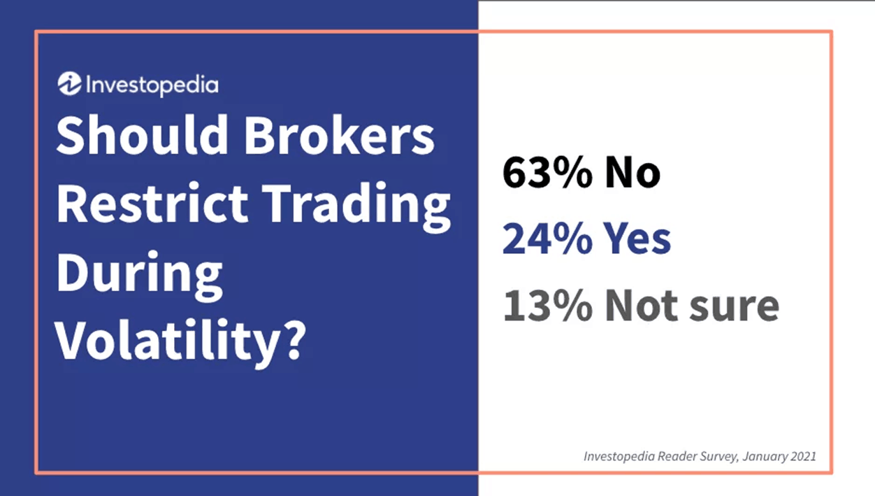 62%的读者同意在线经纪人不应该被允许在波动期间限制交易,只有不到25%的人认为他们应该这样做。