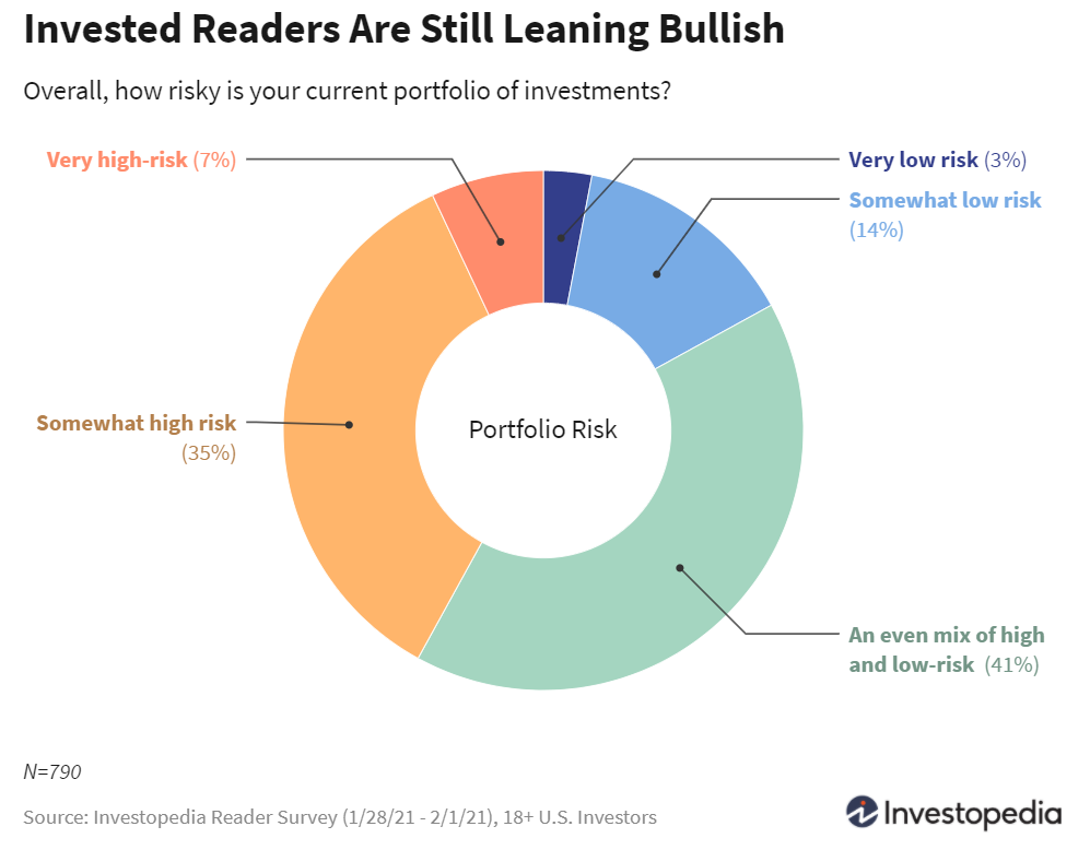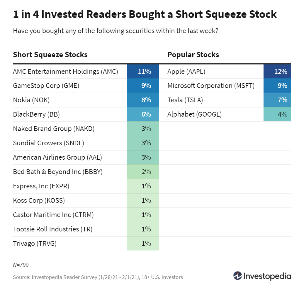 2021年1月底的调查结果显示,前一周有25%的受访者购买了一支或多支高歌猛进的股票,希望通过快速交易赚些钱。