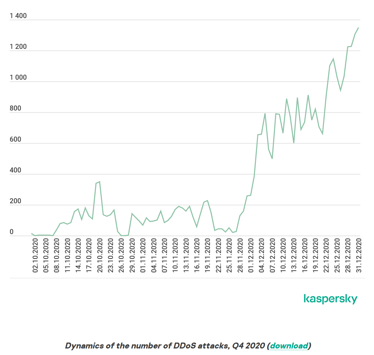 就DDoS而言,该季度最活跃的一天是12月31日,共记录了1,349次攻击。