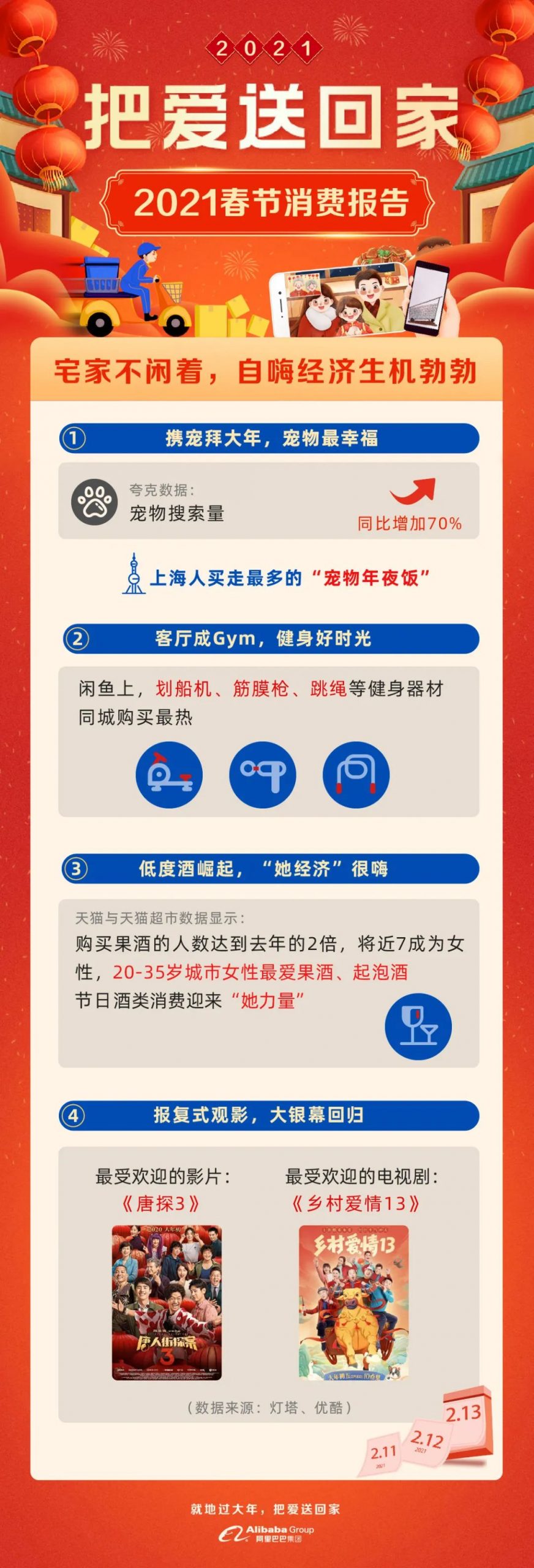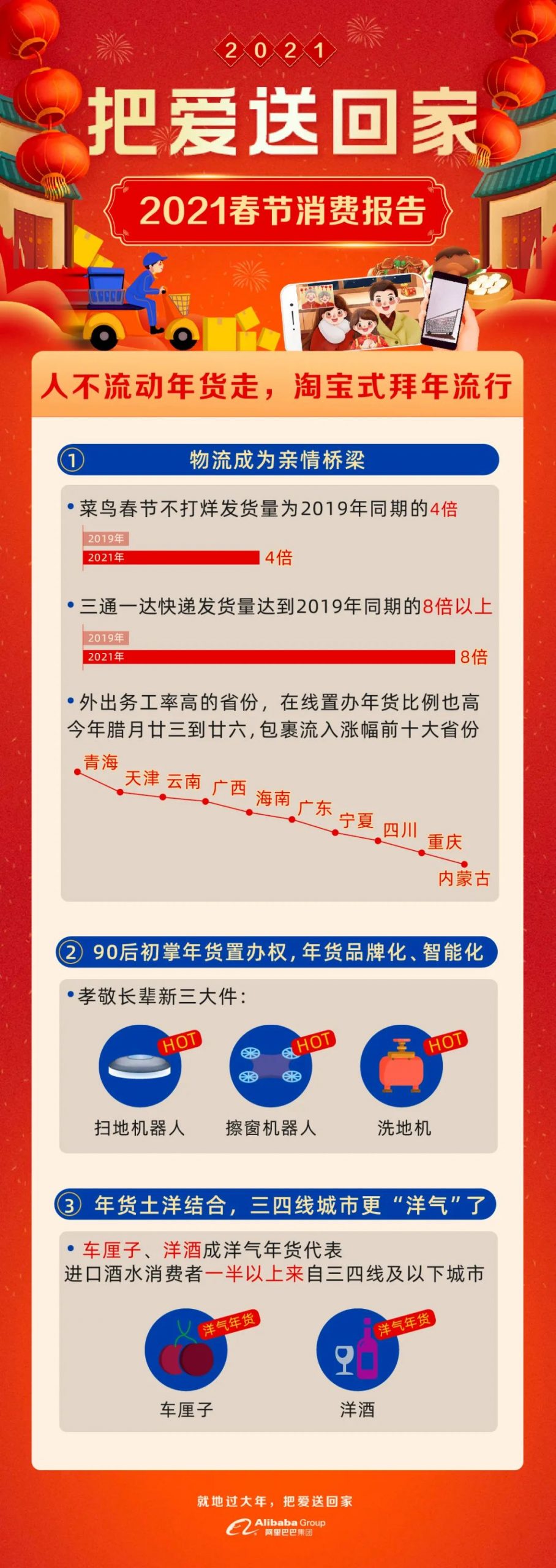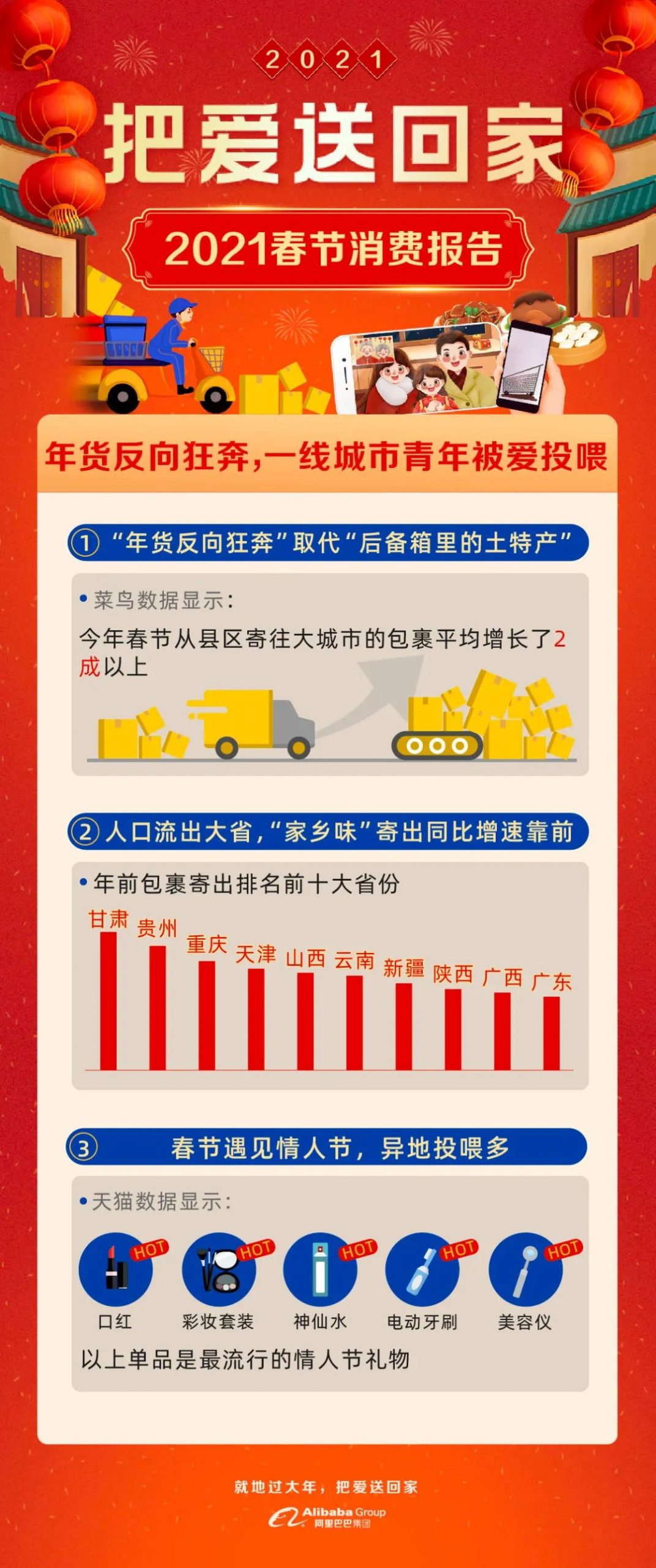 近日,阿里巴巴发布名为《把爱送回家》的春节消费报告。