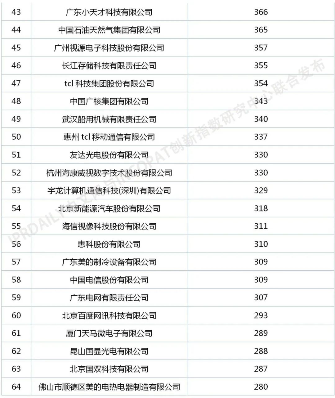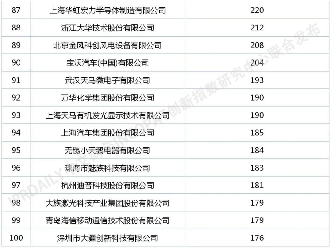 以授权公告日来看,2020年1月1日至2020年12月25日在国家知识产权局公告的发明专利授权量(不含港澳台)523214件,中国申请人占比83.09%。从入榜前100名中国企业发明专利授权量来看(未合并申请人),300件以上的有59家,1000件以上的14家,其中华为技术有限公司以6402件专利位居第一,国家电网有限公司以4122件专利排名第二,oppo广东移动通信有限公司以3549件专利排名第三。