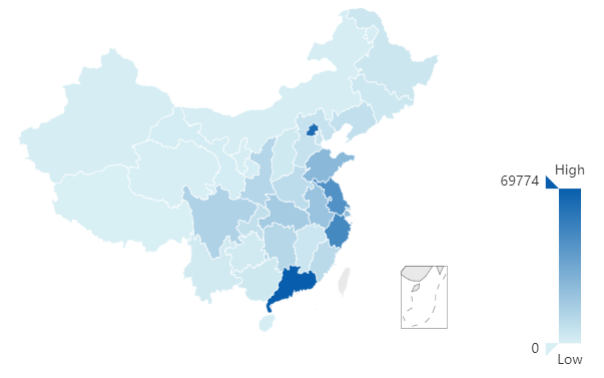 国别为中国的申请人在中国省市分布情况(单位:件)
