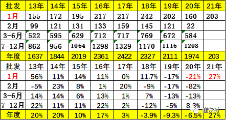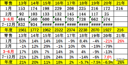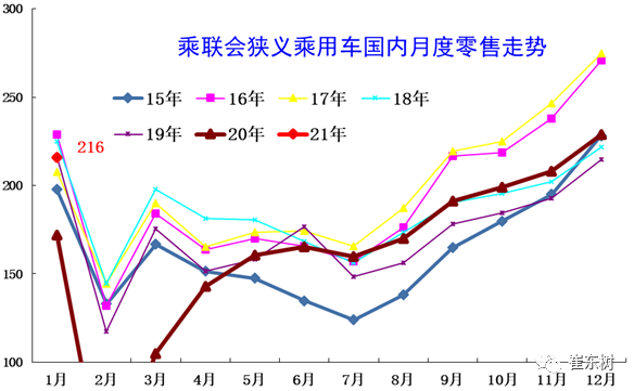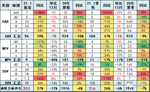 1月乘用车市场零售达到216万辆,环比12月下降5.6%,同比去年1月增长26%,实现了2021年的开门红,现行业的稳步回暖态势。