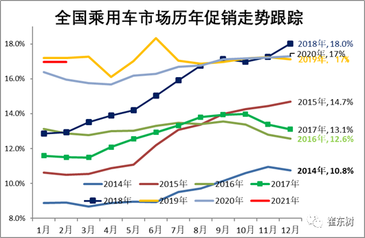 2021年乘用车市场价格走势总体平稳,整个车市价格没有出现明显的促销增大的情况。2020年1-2月度整个车市处于在疫情下的冰封状态,3-5月冰封之后恢复市场,持续保持原有运行特征走势,既没有爆发式的促销增长,也没有供不应求的促销大幅收缩。6-8月的车市促销逐步加大,同时也有一定的新品推出,9月-2021年1月价格促销增加的不大。