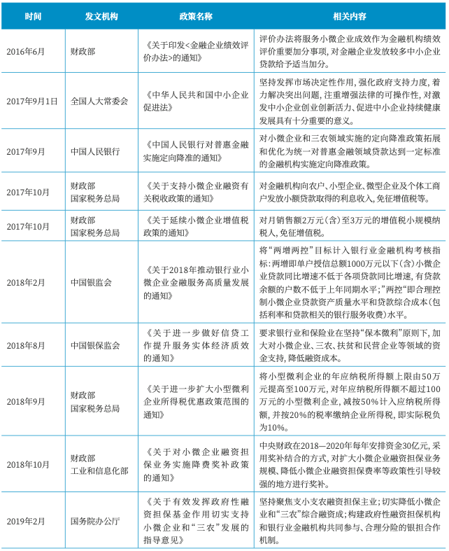 表2-1:对小微企业发展的扶持政策(2016—2019)