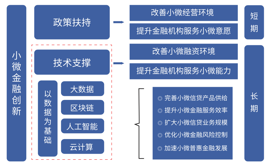 √ 解决小微企业融资难题并非朝夕之功,而应是以市场需求为导向,在政策推动下最终由技术驱动的长期行为。短期依靠政策扶持,驱动市场规模增长,长期依赖技术创新,提供发展内生动力。