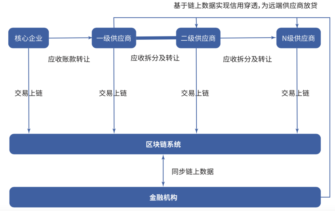 金融科技公司中,蚂蚁金服此前发布的“双链通”就是基于区块链的供应链协作网络。该平台以核心企业的应付账款为依托,以产业链上各参与方间的真实贸易为背景,使得核心企业的信用得以在平台内流动,降低了各参与方可能承受的市场风险和信用风险。