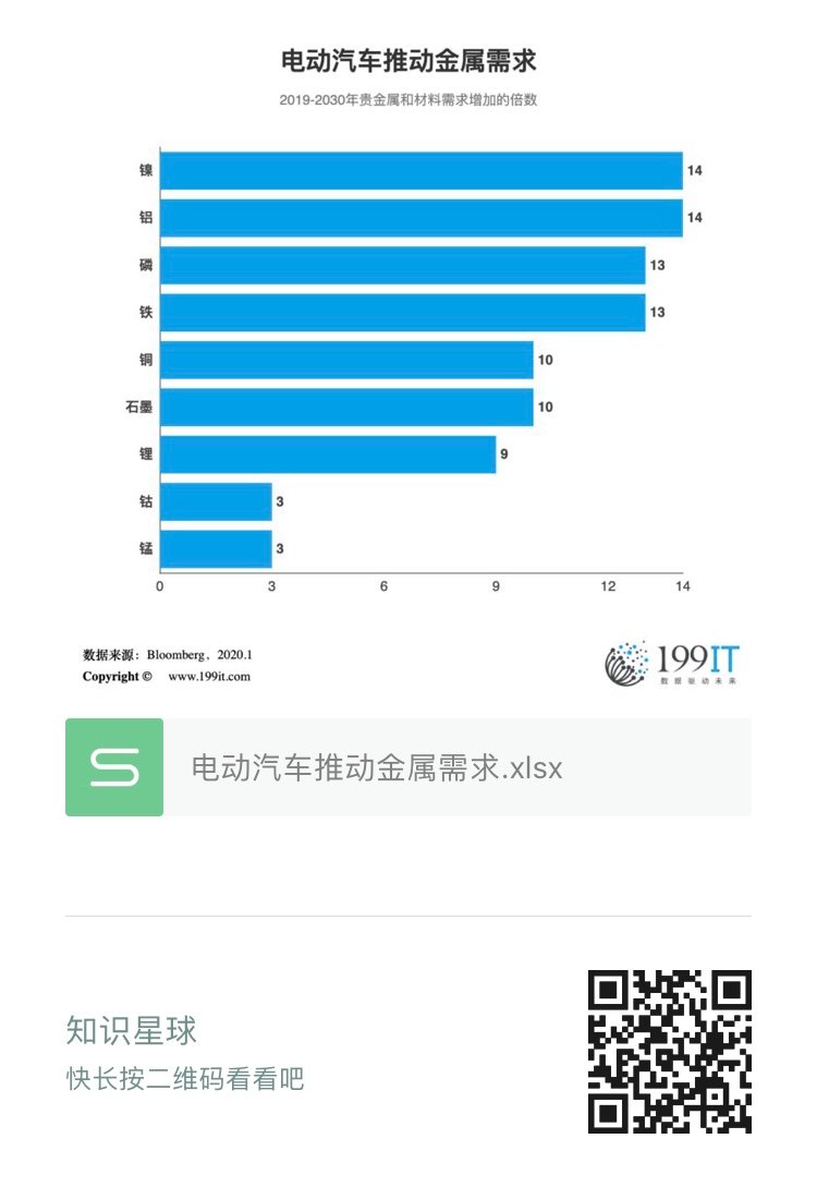 电动汽车推动金属需求(附原数据表) 更多阅读:2020年美国电动汽车注册量TOP10品牌及型号(附原数据表) 2025年全球电动汽车销售渗透率预测(附原数据表) 2025年韩国电动汽车消费者公共地点充电偏好占比预测(附原数据表) 2023年欧洲主要电动汽车分支行业风险投资额及同比(附原数据表) 2022年Q2中国主要电动汽车厂商销售市场份额 (附原数据表) 德勤咨询:汽车技术前沿调查Dealroom:2023 年英国电动汽车电池技术报告SRC:2022年电池金属报告Synthesio:2022年在线消费者对电动汽车的态度调查ACEA:欧洲电动汽车充电基础设施总体规划(72页)丰田:2019年电动汽车全球化战略报告SMMT:电动汽车在英国汽车市场份上升至13.9%EV-volumes:2020年全球插电式汽车销量为324万辆波士顿咨询:欧洲高端买家重新考虑购买电动汽车瑞信:2030年电动汽车渗透率预期升至57%
