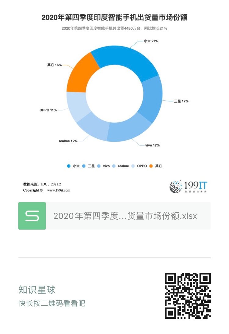 - 2020年第四季度印度智能手机出货量及增长率(附原数据表)