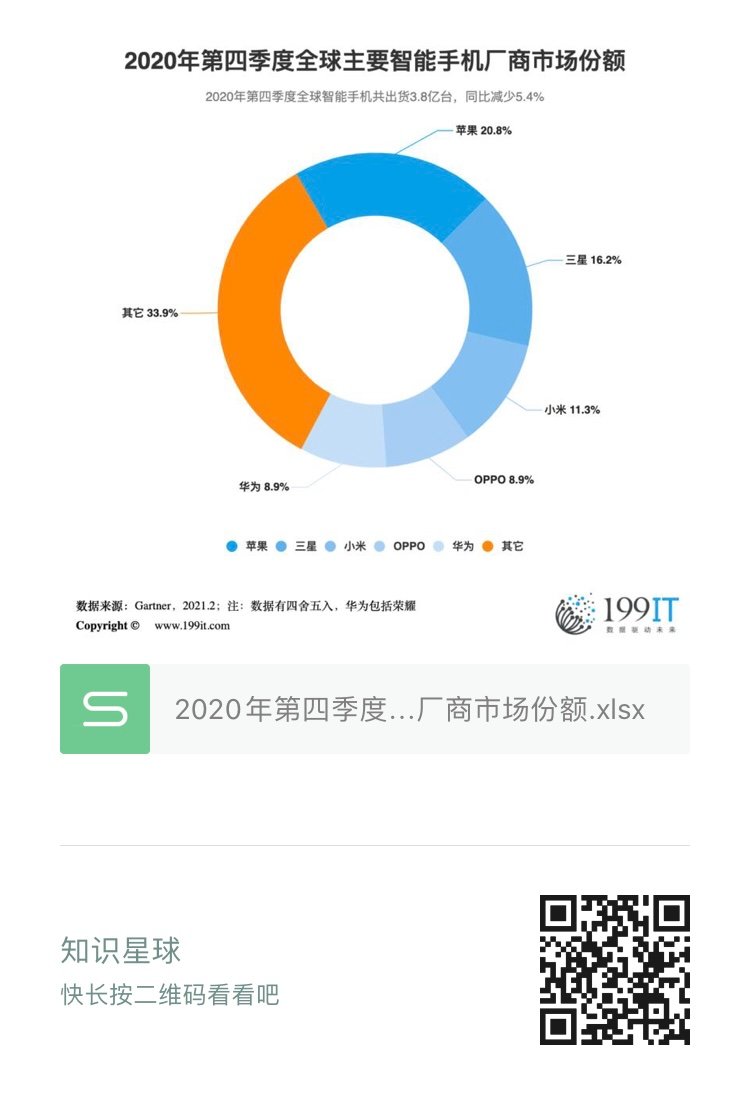 - 2020年第四季度中国智能手机出货量市场份额(附原数据表)
