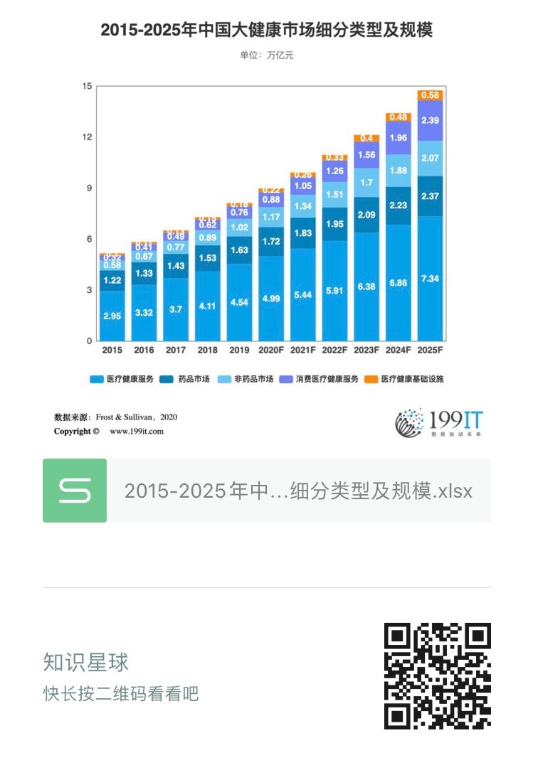 2015-2025年中国大健康市场细分类型及规模(附原数据表) ​​​​