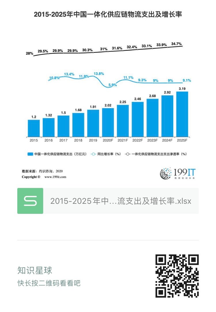 2015-2025年中国一体化供应链物流支出及增长率(附原数据表) ​​​​