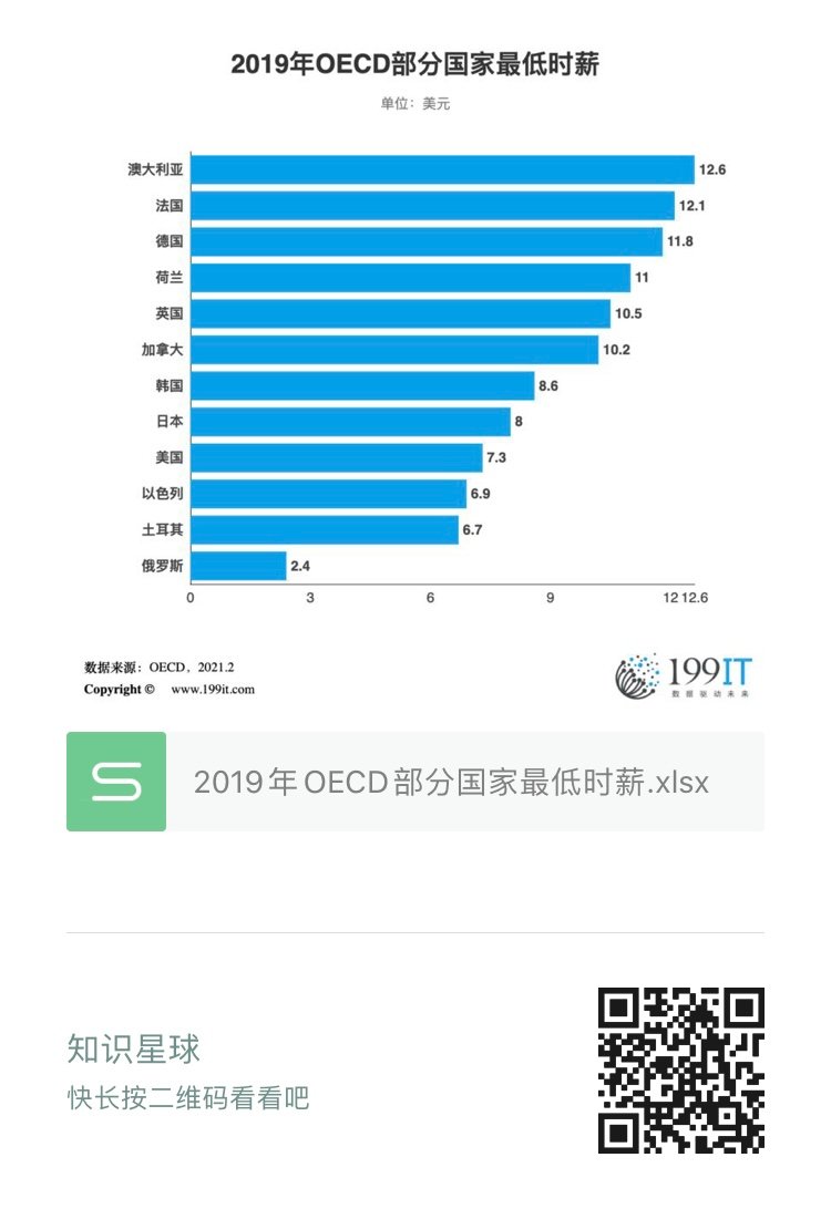 2019年OECD部分国家最低时薪(附原数据表) ​​​​