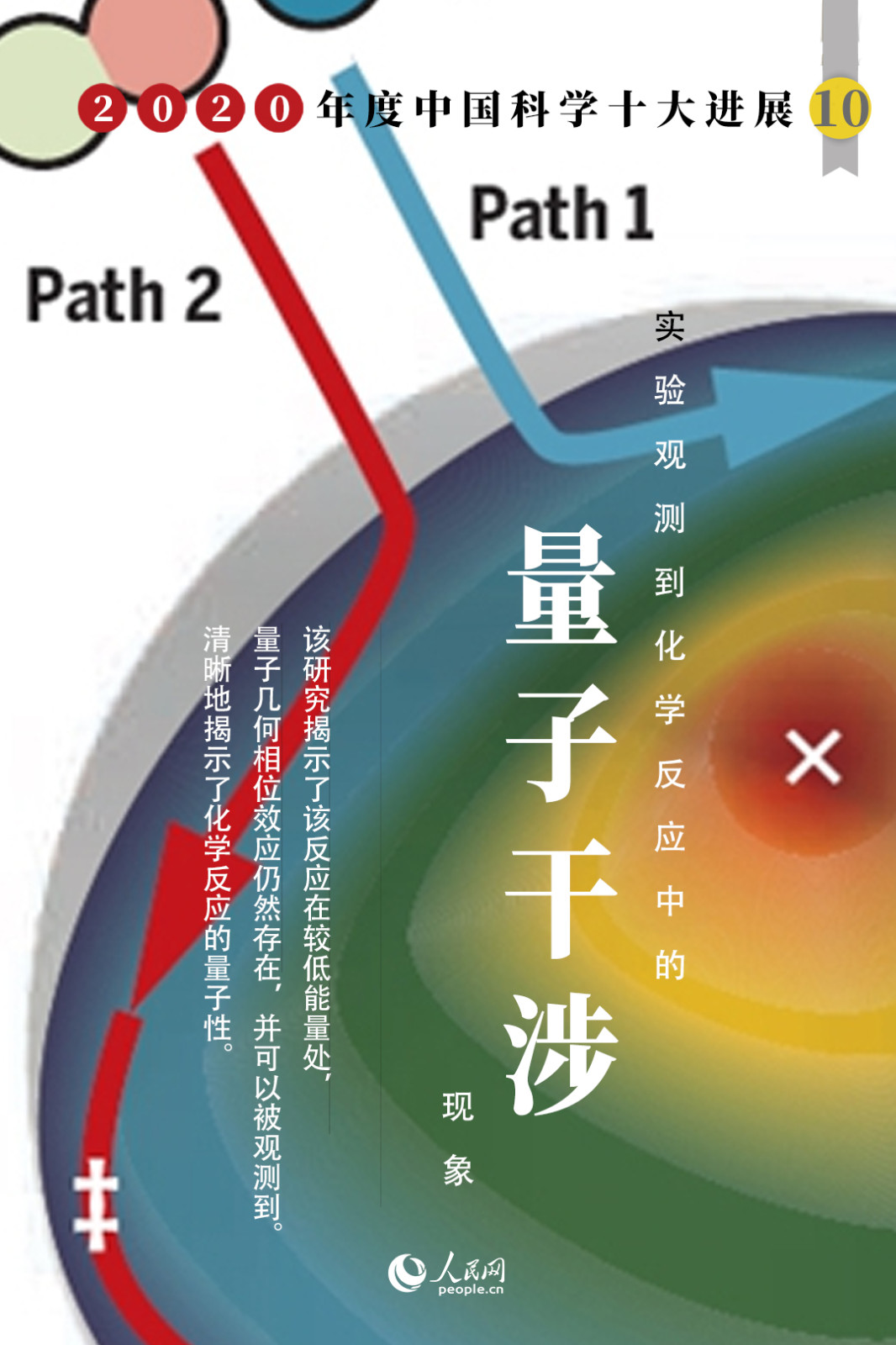 中国科学院大连化学物理研究所杨学明院士、张东辉院士、孙志刚和肖春雷研究团队提供了一个研究范例。他们研究发现,在H + HD→H2 + D反应中,在碰撞能量为1.9~2.2电子伏的范围内,产物H2(v‘= 2,j’= 3)的后向散射呈现显著的振荡(其中v‘是振动量子数,j’是转动量子数)。通过拓扑理论分析,发现该反应存在两条迥然不同的反应路径,振荡是由这两条路径之间的量子力学干涉所产生的。该研究揭示了该反应在较低能量处,量子几何相位效应仍然存在,并可以被观测到。这非常类似于众所周知的Aharonov-Bohm效应,清晰地揭示了化学反应的量子性。