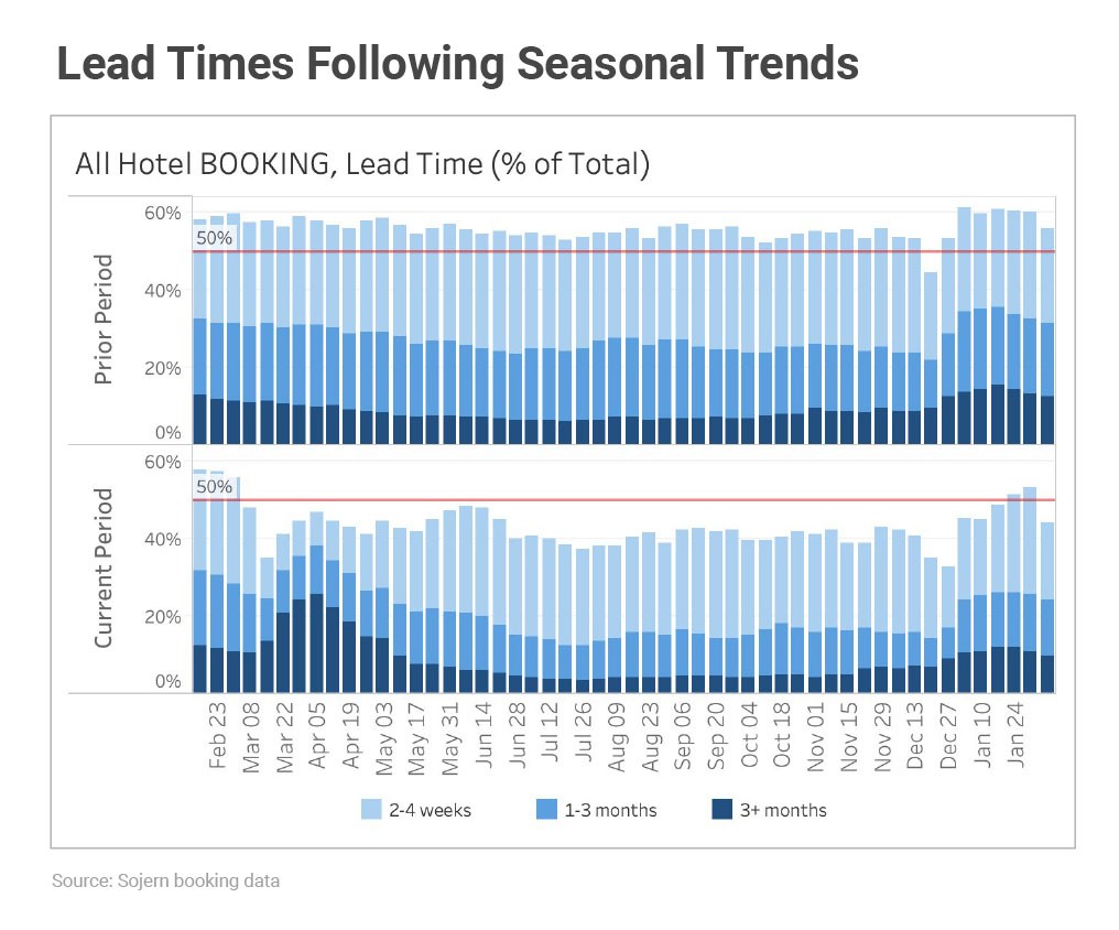 2020年3月初,“备货期”显示出一个巨大的起伏,可能是因为旅行者们计划远离大流行,以为大流行不会持续这么久。更长的准备期是个好消息,它证明了旅行者的信心。