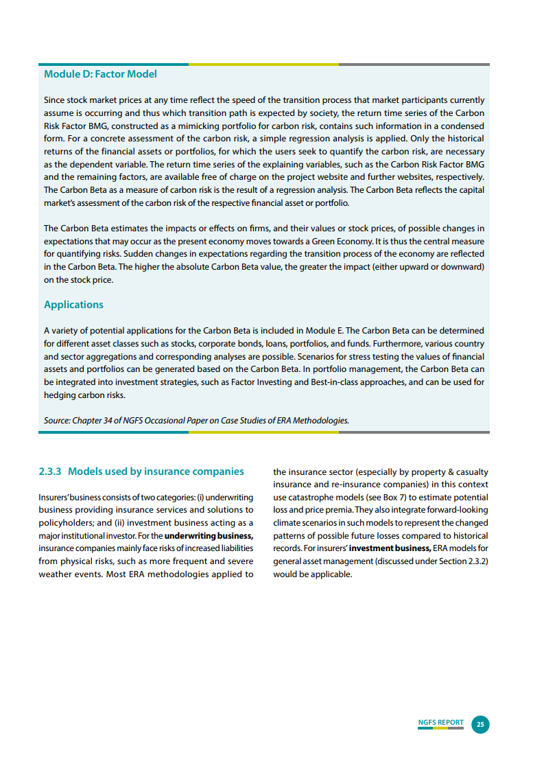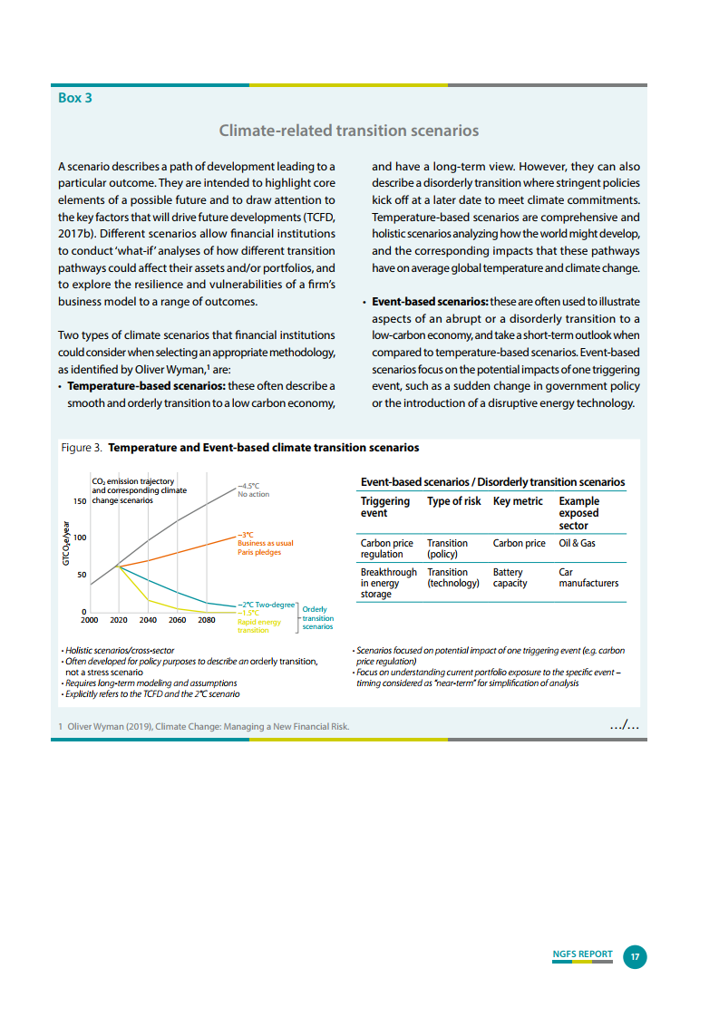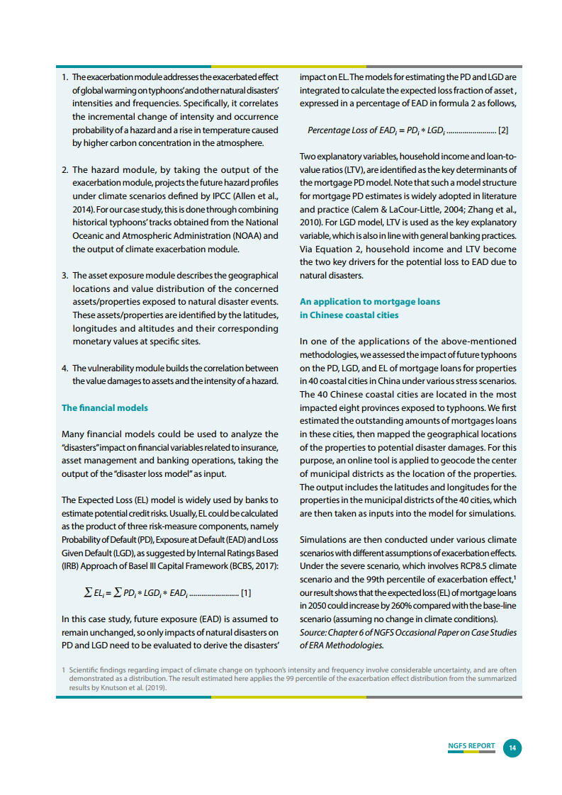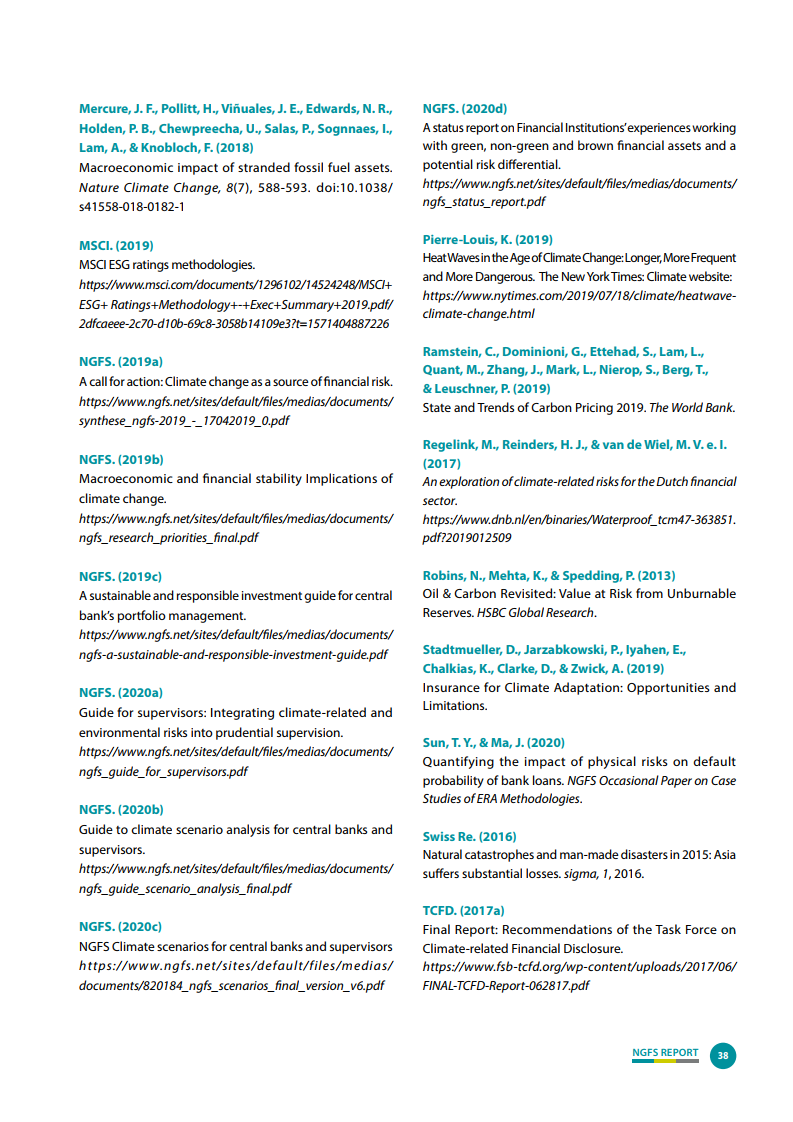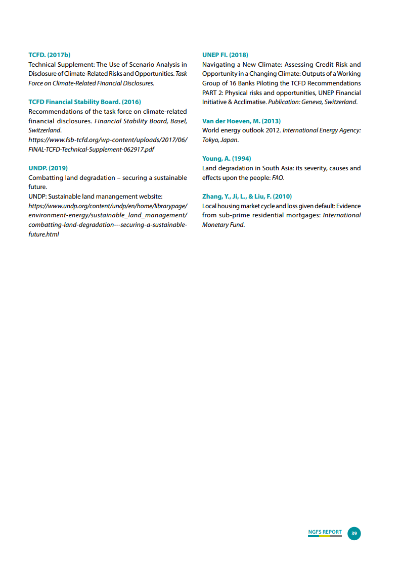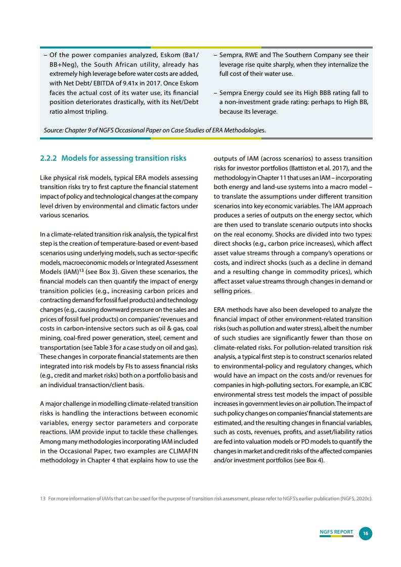 支持示范项目:NGFS、国际组织、央行和其他监管机构可以考虑对重点行业或重点地区的示范研究项目进行扶持,这些项目可针对银行业、资管业和保险业金融机构,并覆盖对环境和气候因素有重大风险敞口的地区和产业。