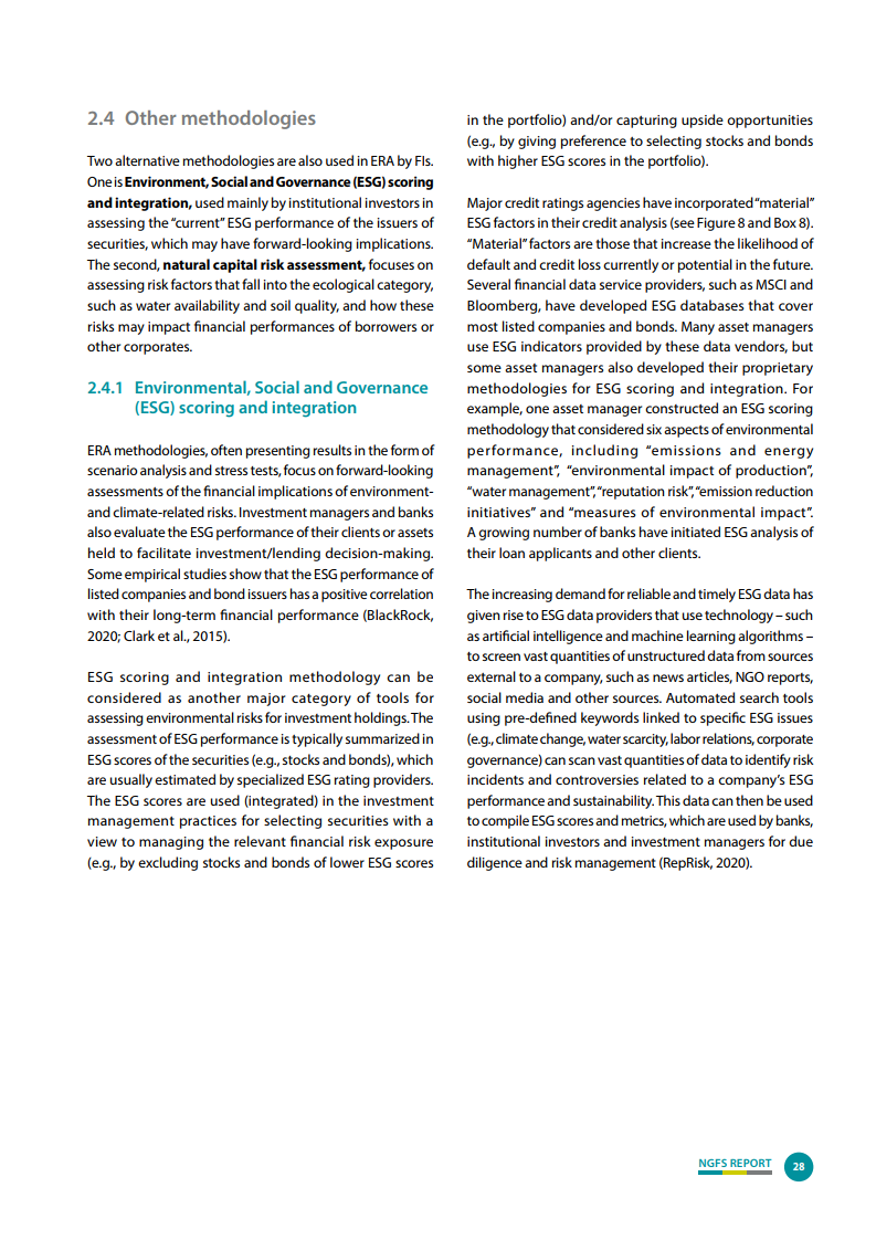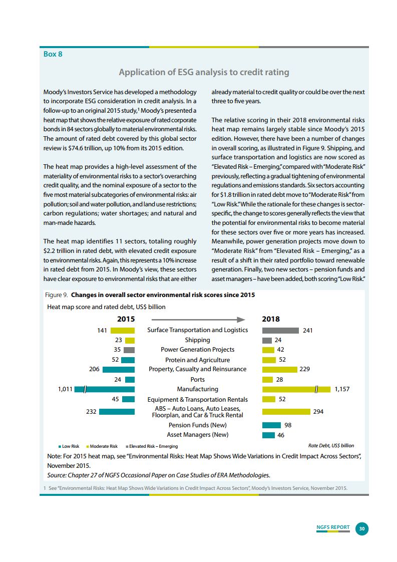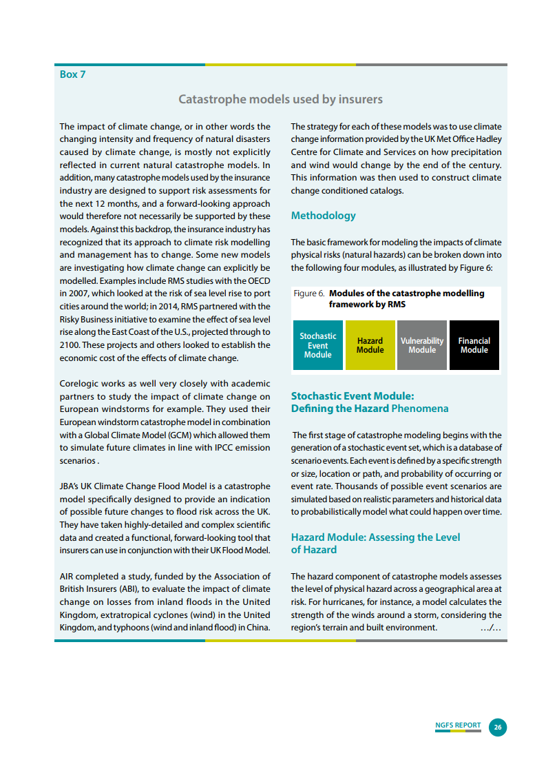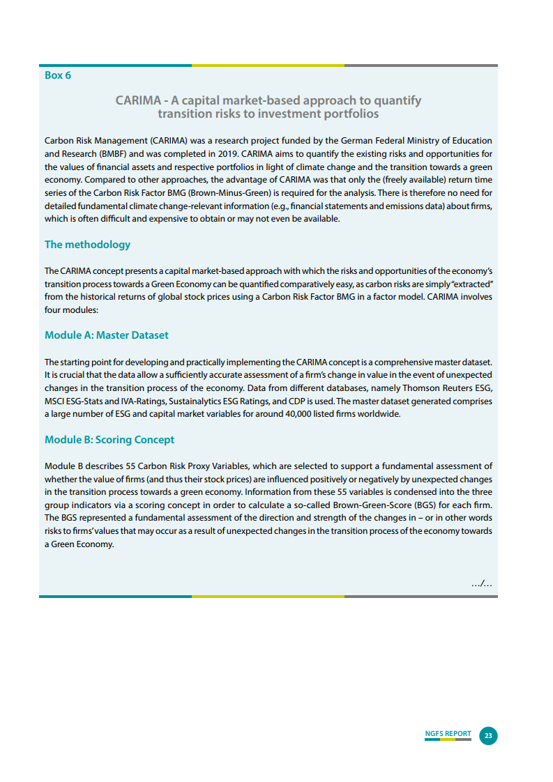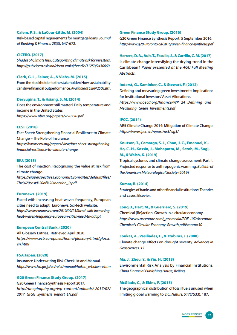 支持示范项目:NGFS、国际组织、央行和其他监管机构可以考虑对重点行业或重点地区的示范研究项目进行扶持,这些项目可针对银行业、资管业和保险业金融机构,并覆盖对环境和气候因素有重大风险敞口的地区和产业。