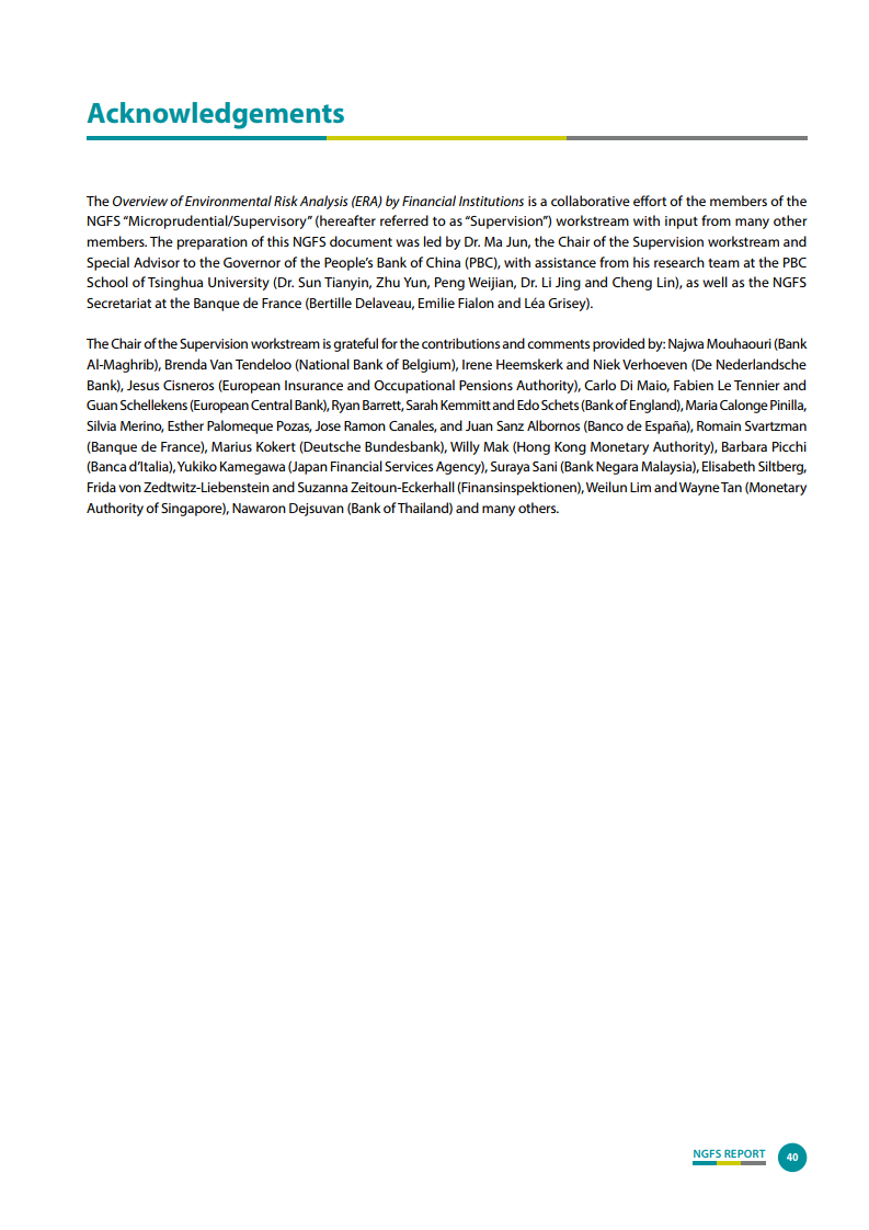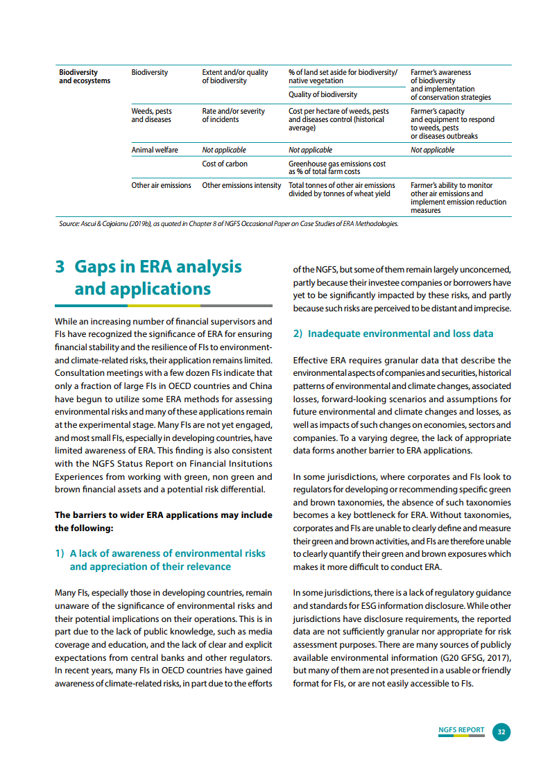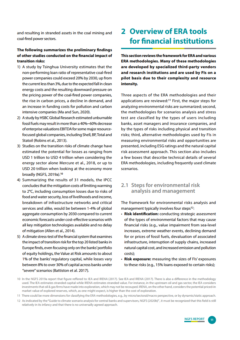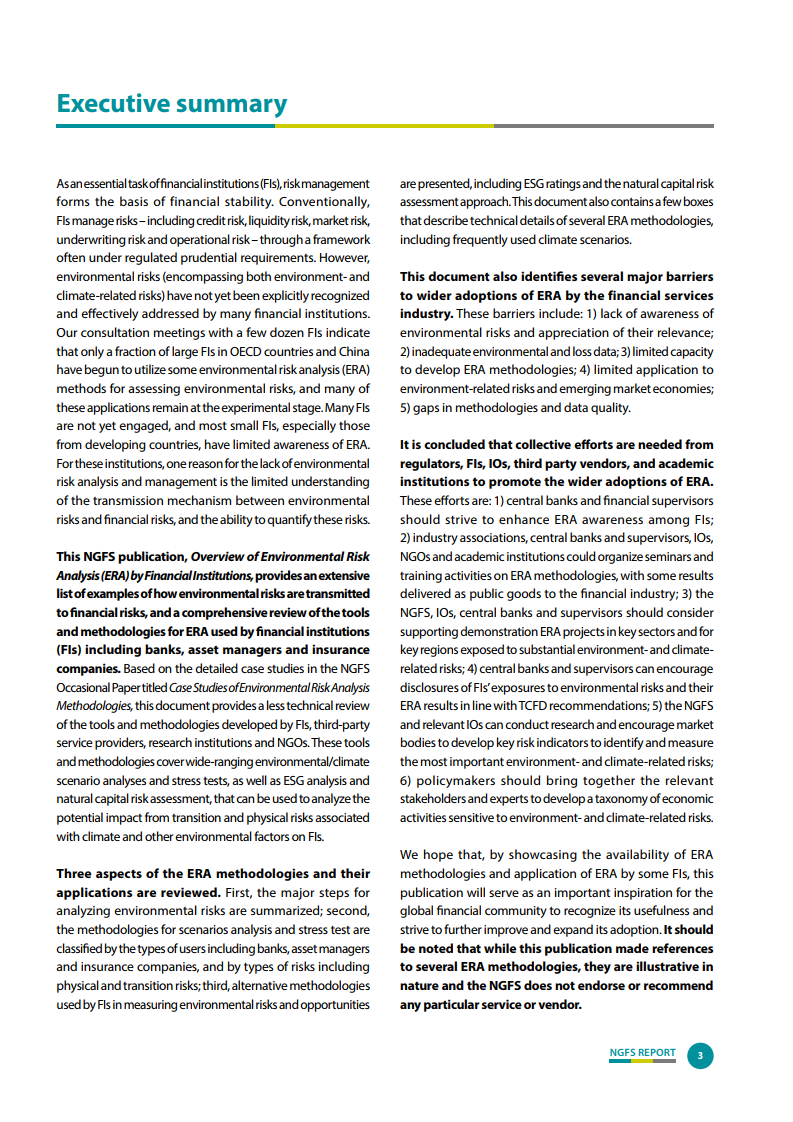 为了推动金融机构开展环境风险分析,《综述》报告提出以下六个建议: