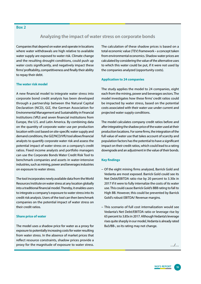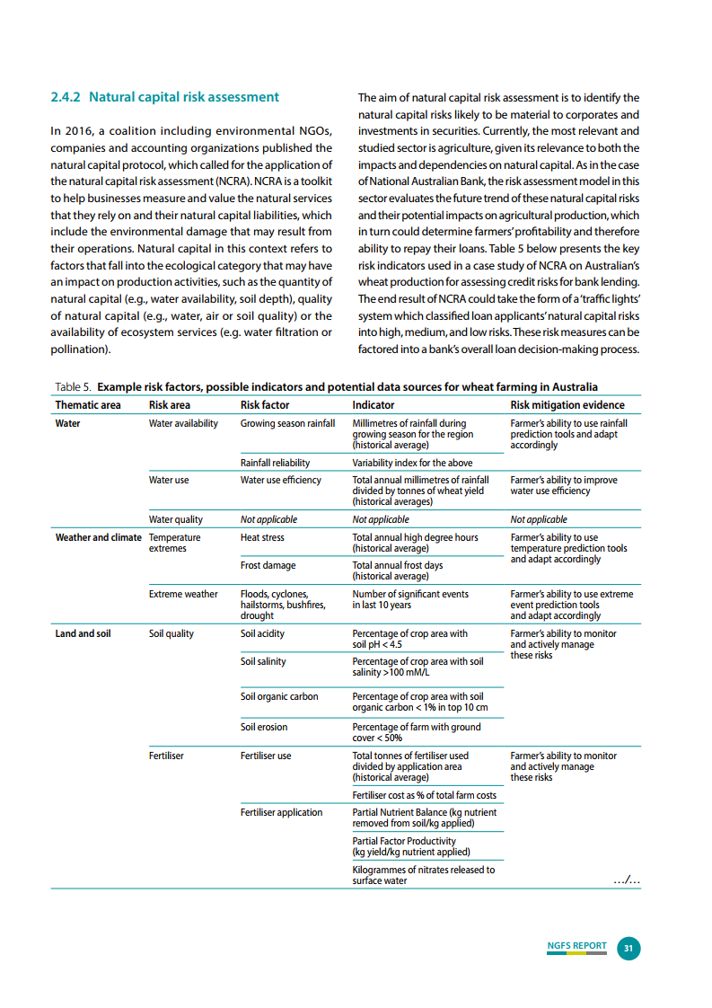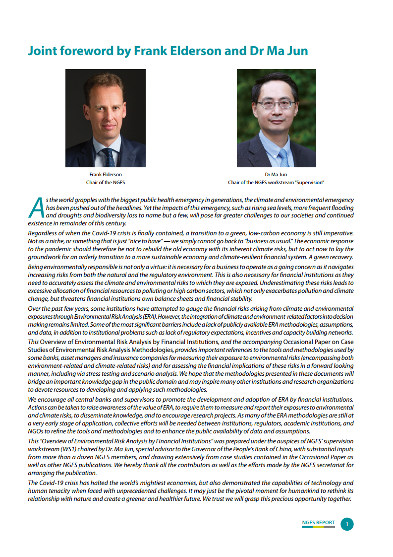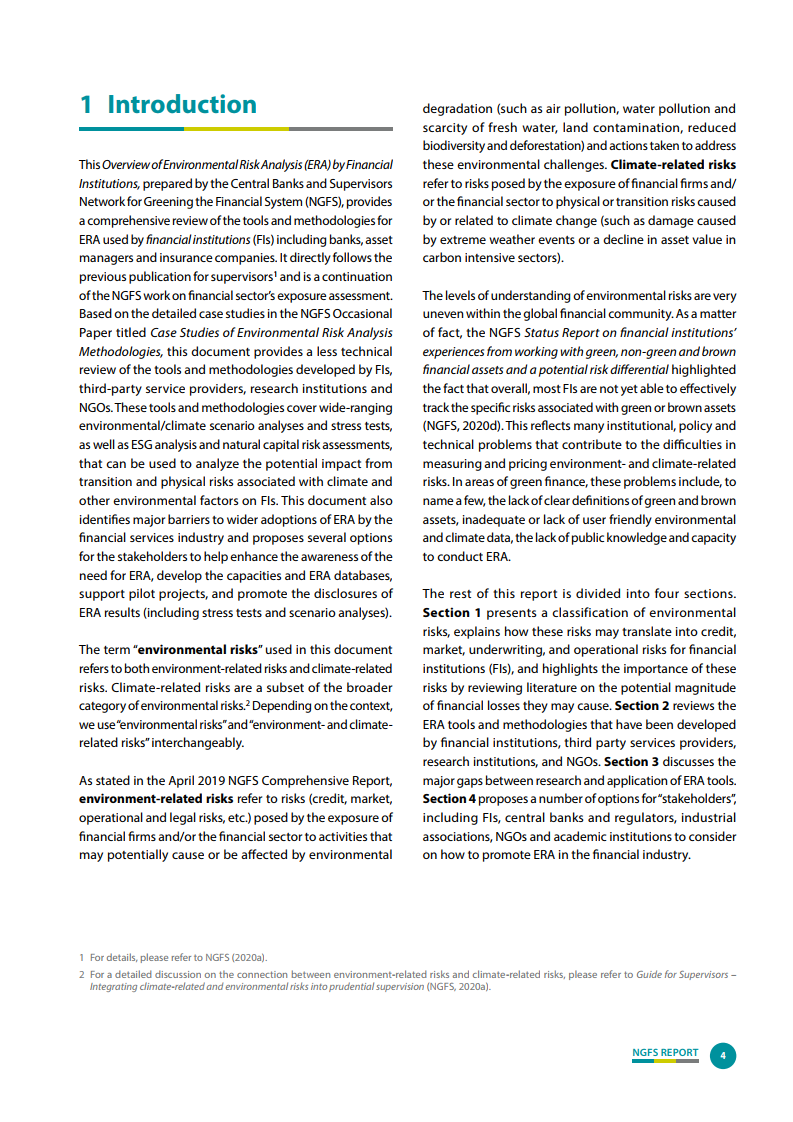为了推动金融机构开展环境风险分析,《综述》报告提出以下六个建议: