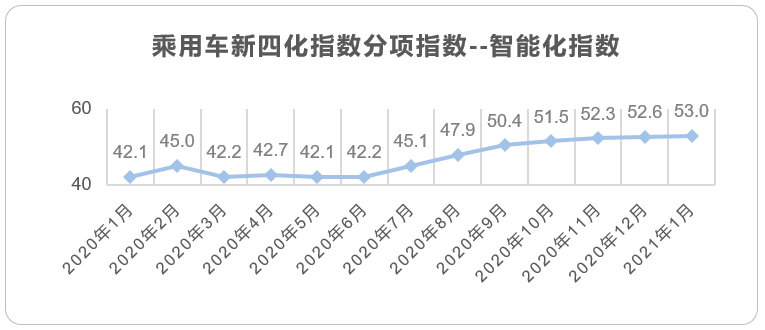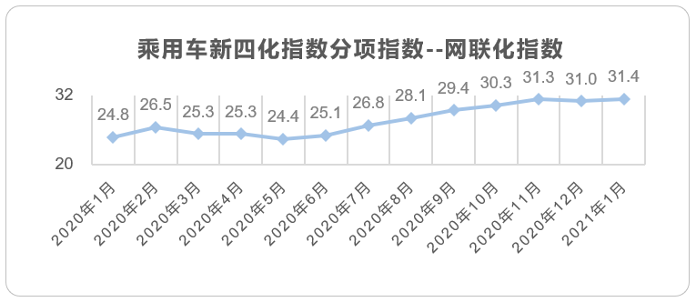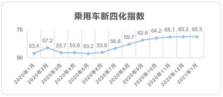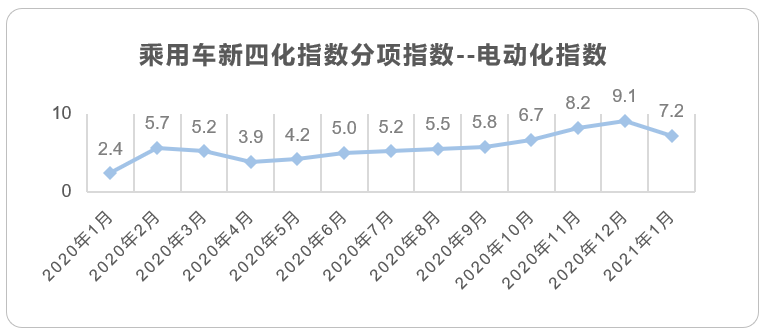 2021年1月乘用车市场迎来了“开门红”。2021年1月销量同比大涨25%,其原因是去年春节是在1月份,车市提早“放工”,而今年春节是2月12日,推迟了半个多月,同比大涨是基于去年同期低水平的销量数据;相比2020年12月环比下降5.6,但明显优于2017年、2018年和2020年下降20%左右的表现。2021年1月新四化指数整体表现并没有快速提升。2021年新能源市场仍然是最值得关注的市场。1月电动化指数明显下滑,主要是由于五菱宏光Mini与特斯拉 Model 3销量的明显下滑,但比亚迪汉仍保持持续增长态势,有望月销破万。智能化、网联化仍由于年前经销商去库存,低端车型、入门款车型的销量增长影响,整体指数未发生明显变化,但从1月份乘用车零售销量明显低于批发销量,我们可以获知去库存基本达到预期。从数据角度出发,1月新四化指数中电动化指数明显下滑外,智能化、网联化基本与去年12月持平。随着近期亚洲疫情控制良好,欧洲和北美疫情也在改善,国内汽车市场已基本平稳,全球经济明年下半年预计也会有所恢复,2021年汽车市场同比增长几乎是肯定的。同时2021年新能源市场将是各家整车厂重点关注的市场,根据Canalys最新数据显示,预测2021年中国新能源汽车市场销量将达到190万辆,占总销量的9%,同比增长51%。同时随着新能源市场的进一步扩张,新能源市场更为普及的智能化和网联化也将带动整体市场智能化与网联化的发展。基于2021年1月整体市场及新四化指数表现预见,我们预计2021年整体新四化指数将进一步提升。