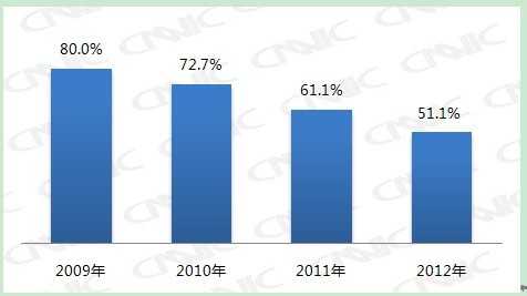 根据CNNIC连续调查,网民在特定网站购物的单一度一直在降低。2012年,有51.1%的网民只在一个购物网站上网购。较2011年降低了10个百分点,较2010年降低了21.6个百分点。这是由于用户消费过程中形成了一定的选择归类模式,即便一站式购物可能满足用户大多数消费需求,但是对于不少用户而言,他们会根据自己的判断选择在不同的平台采购不同的产品,以免“将鸡蛋装在同一个篮子里”。