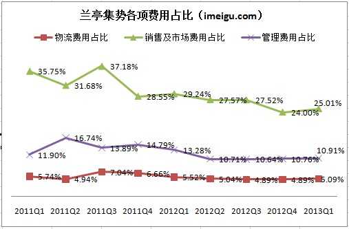 兰亭集势2010、2011、2012的毛利率分别为29.1%、33.3%、41.7%,2013年Q1继续提高至45.4%。毛利率的提高,主要和兰亭集势的品类调整策略相关,从报表来看,该策略收效明显。