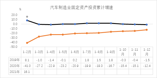 中国汽车工业协会:2021年1-2月汽车制造业固定资产投资同比结束下降 据中国汽车工业协会整理的国家统计局公布的数据显示,2021年1-2月,汽车制造业固定资产投资同比结束去年持续下降趋势,呈较快增长,达到16.1%,但增速低于全国固定资产投资(不含农户)18.9个百分点。 更多阅读:中国汽车工业协会:2022年汽车制造业利润略有增长中国汽车工业协会:2023年1-7月汽车制造业利润同比微增中国汽车工业协会:2022年汽车制造业固定资产投资保持快速增长中国汽车工业协会:2020年汽车制造业固定资产投资同比下降12.4%中国汽车工业协会:2022年6月汽车制造业工业增加值同比呈明显增长中国汽车工业协会:2022年1-8月汽车制造业固定资产投资稳中有升中国汽车工业协会:2022年1-5月汽车制造业实现利润同比降幅比上月略有扩大中国汽车工业协会:2023年1-7月汽车制造业营业收入保持增长中国汽车工业协会:2023年1-2月汽车制造业利润同比快速下降中国汽车工业协会:2023年1-5月汽车制造业营业收入同比保持较快增长中国汽车工业协会:2023年1-5月汽车制造业营业收入同比保持较快增长中国汽车工业协会:2023年一季度汽车制造业固定资产投资保持增长中国汽车工业协会:2023年1-5月汽车制造业固定资产投资保持较快增长中国汽车工业协会:2023年上半年汽车制造业固定资产投资保持较快增长中国汽车工业协会:2023年一季度汽车制造业工业增加值同比增长