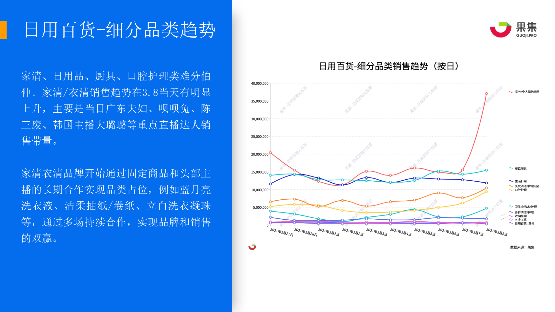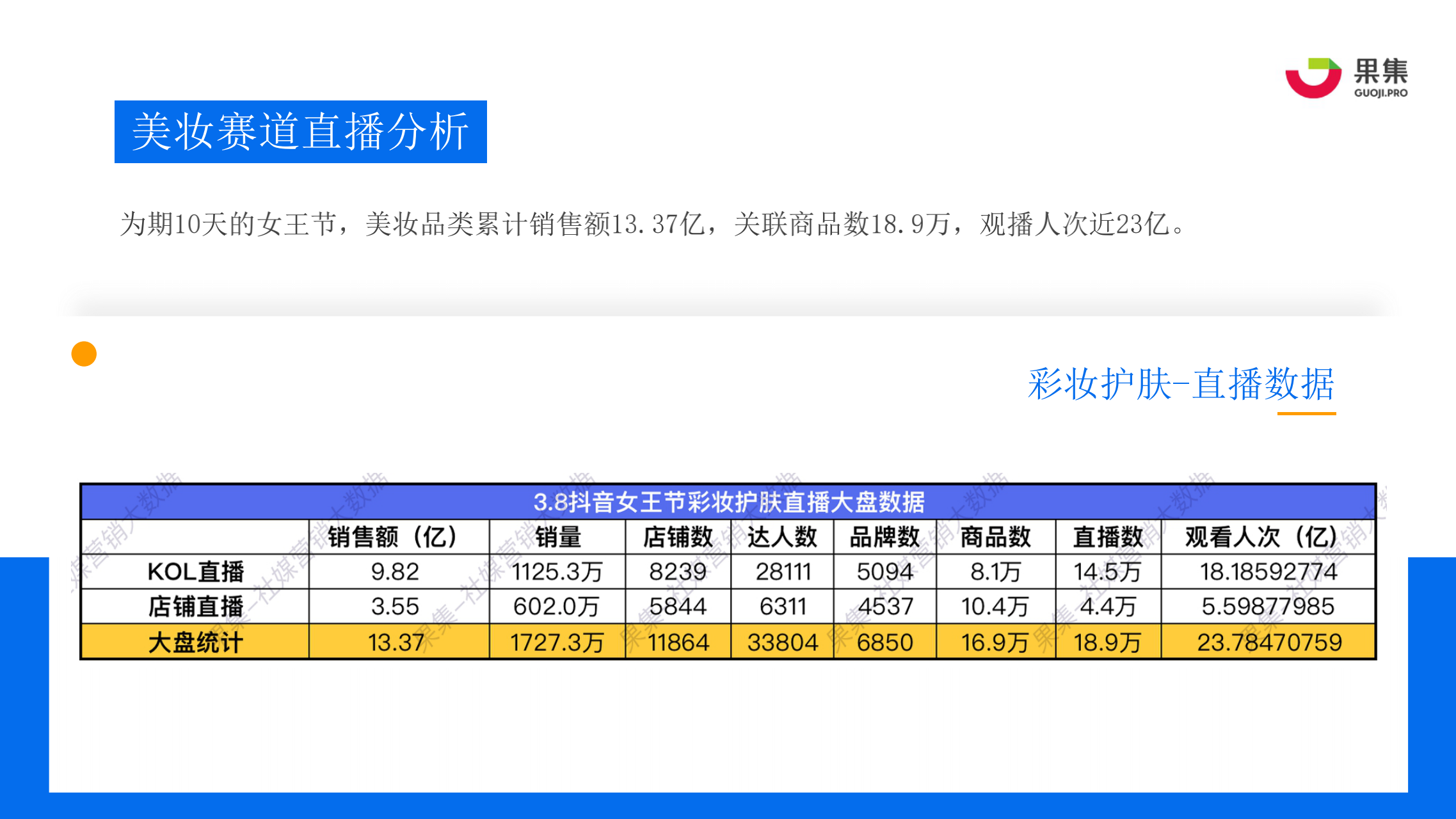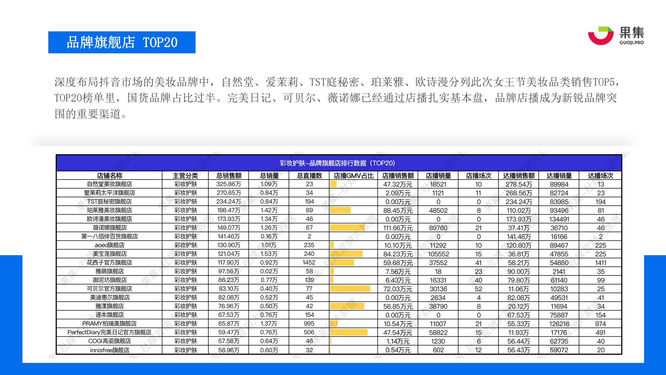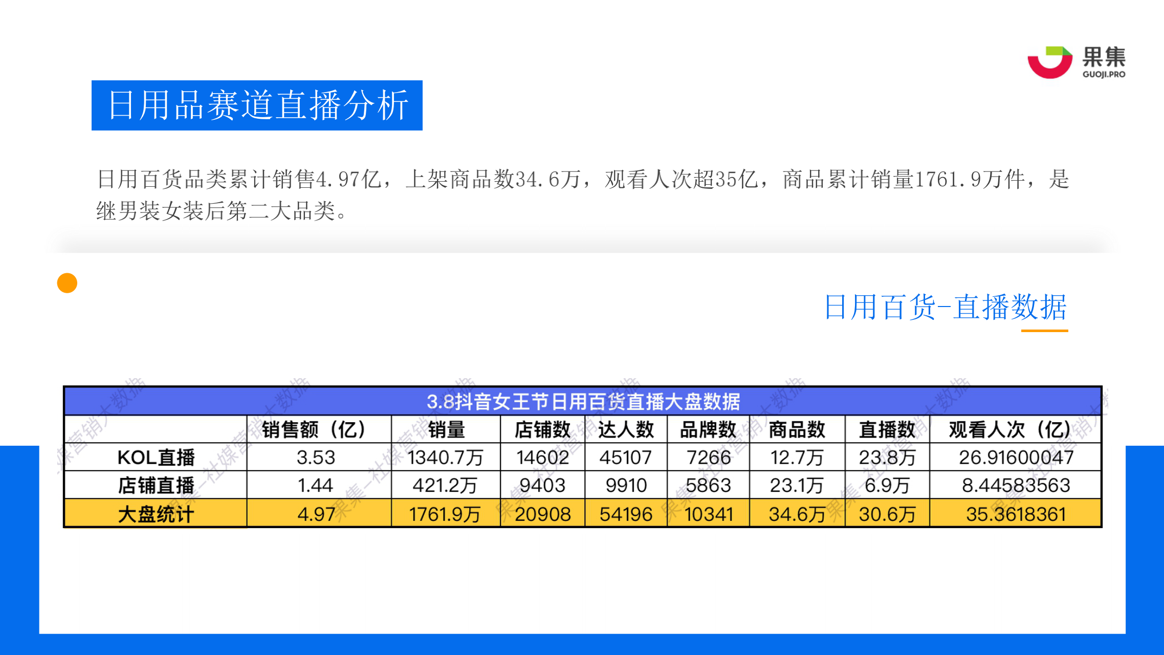 女王节中直播电商GMV占比高达86%,达人直播销售额约46亿,较年货节期间占比略有减少,但重点达人势头依然强劲,罗永浩、张庭、朱梓骁、涂磊4位主播累计销售额均破亿,同时直播正在成为新的消费趋势,女王节期间,仅用10天,就达到了109亿观看人次。