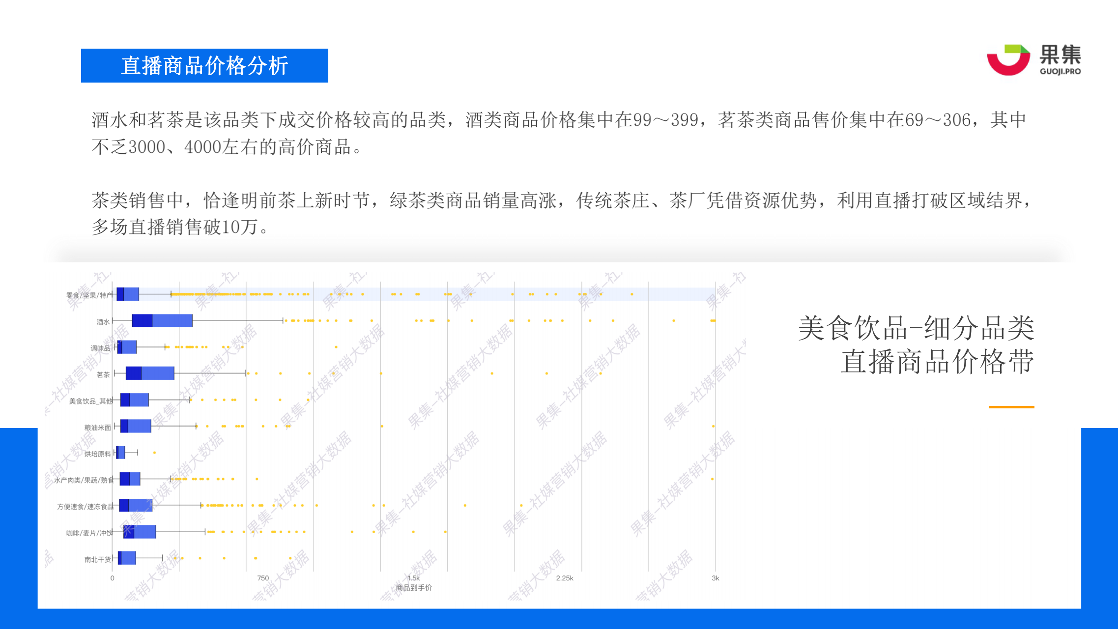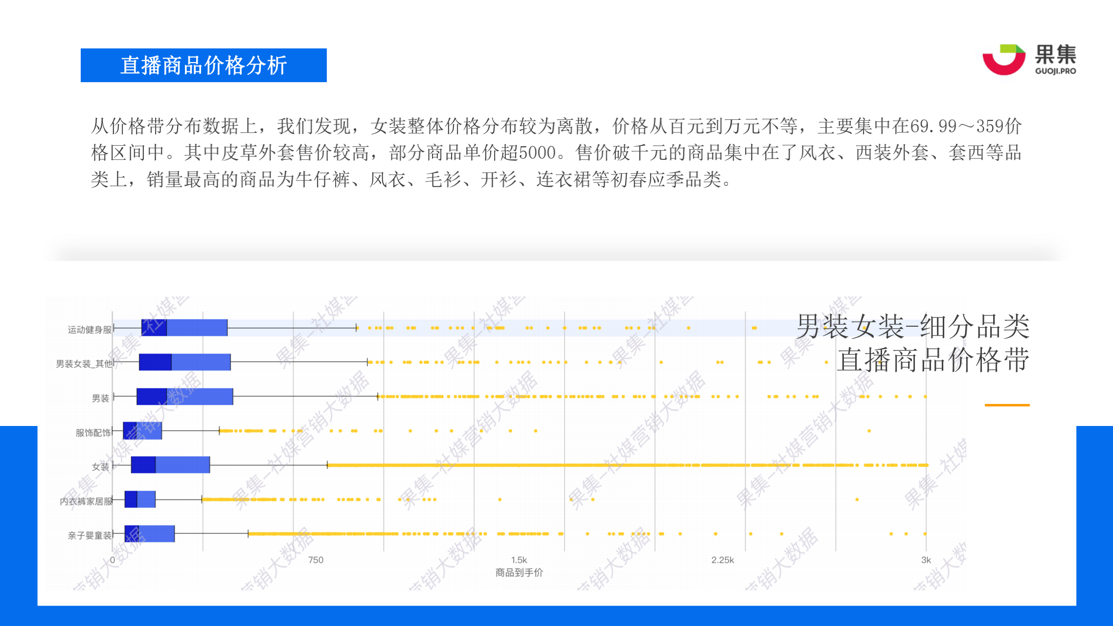 此次女王节,共计有64412个品牌,84543家店铺参与了直播活动,其中服装、珠宝、美妆、食品、鞋帽、日用品消费占比近八成,各品类直播客单价超百元,从品类上看,数码、珠宝、家电类直播客单价领先。