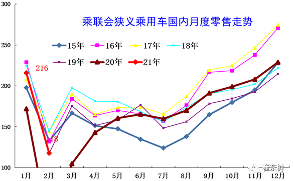 今年的去库存明显,加之目标压力较小,2月厂商库存持续下降。2月末厂商库存减少0.1万辆,渠道库存减少11万辆;2021年1-2月厂家库存减少17万辆,与历年1-2月减少库存幅度相近,形成连续4年强力去库存的特征。
