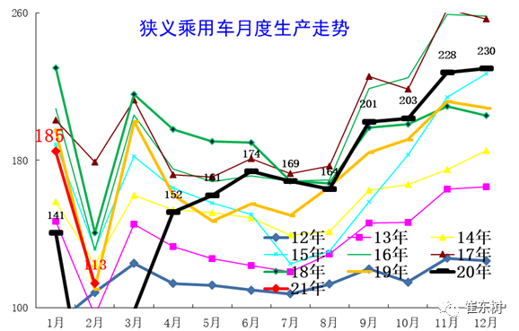 1-2月累计生产298万辆,同比2019年下降2%,产量减少8万辆,总体下降幅度不大。