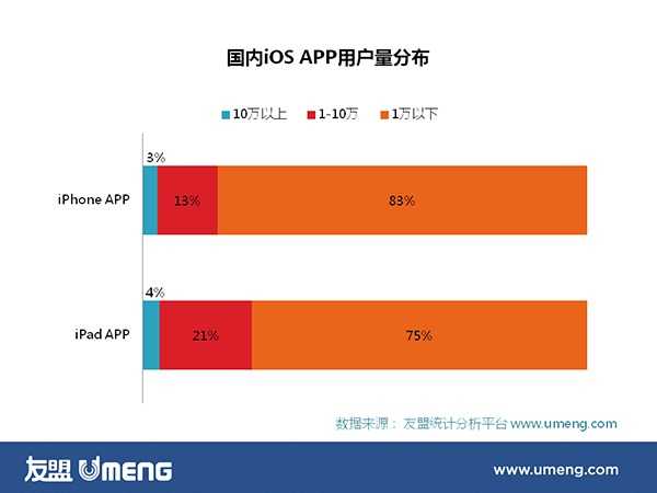 1、中国开发者随iOS生态系统不断成长,平均拥有3万用户