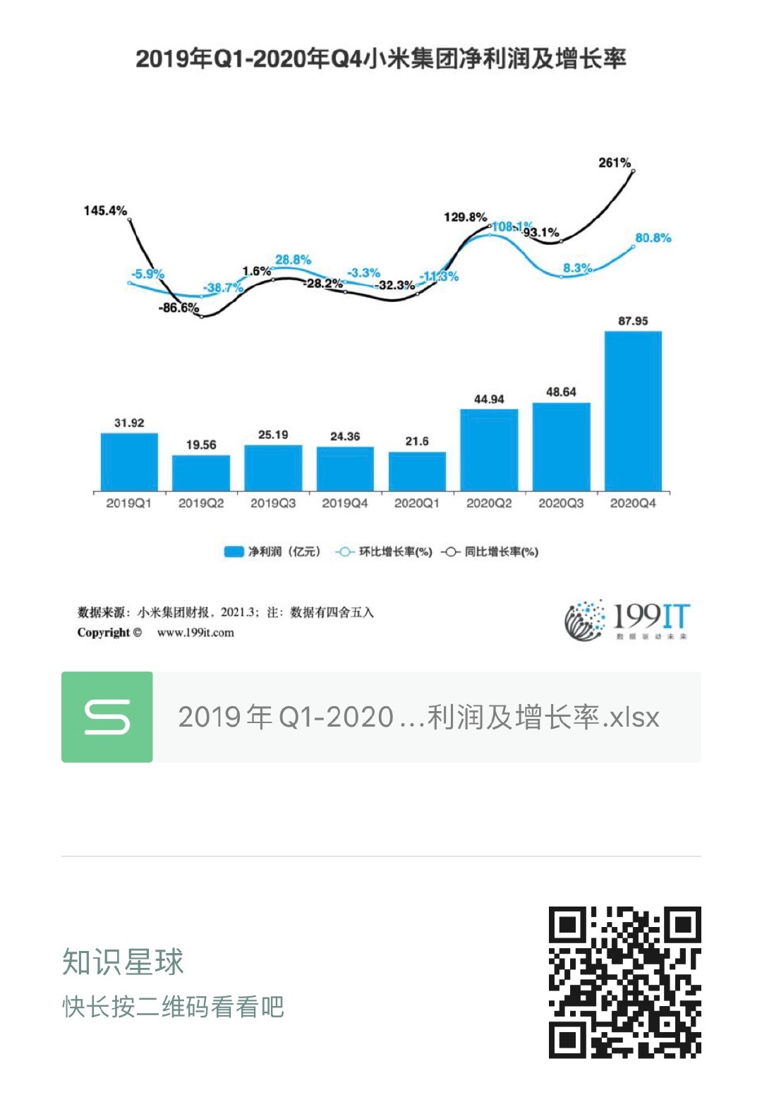 - 2019年Q1-2020年Q4小米集团净利润及增长率(附原数据表)