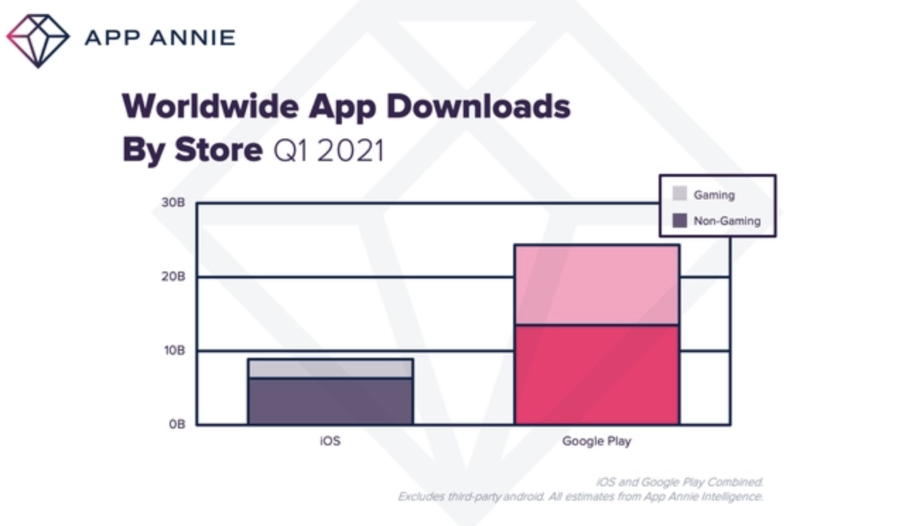 在一季度消费者开支中,游戏类软件排名第一,一共开支了220亿美元。其中苹果商店开支130亿美元,同比增长三成,谷歌商店开支90亿美元,同比增长35%。游戏玩家平均每个星期下载十亿个游戏,下载量同比增长了15%。