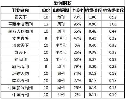 特别提示:鉴于数据采样的区域和渠道限制,本指数榜单仅供媒体市场参考,不能作为媒体发行量的完整参照。