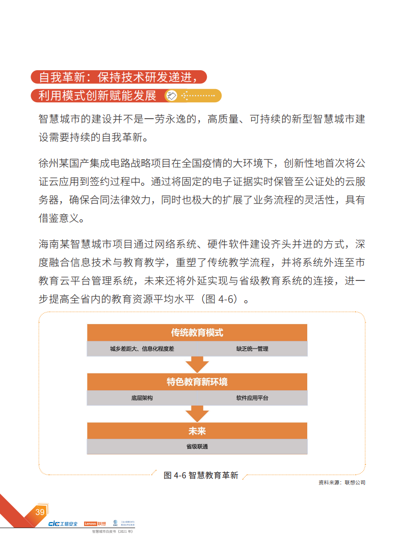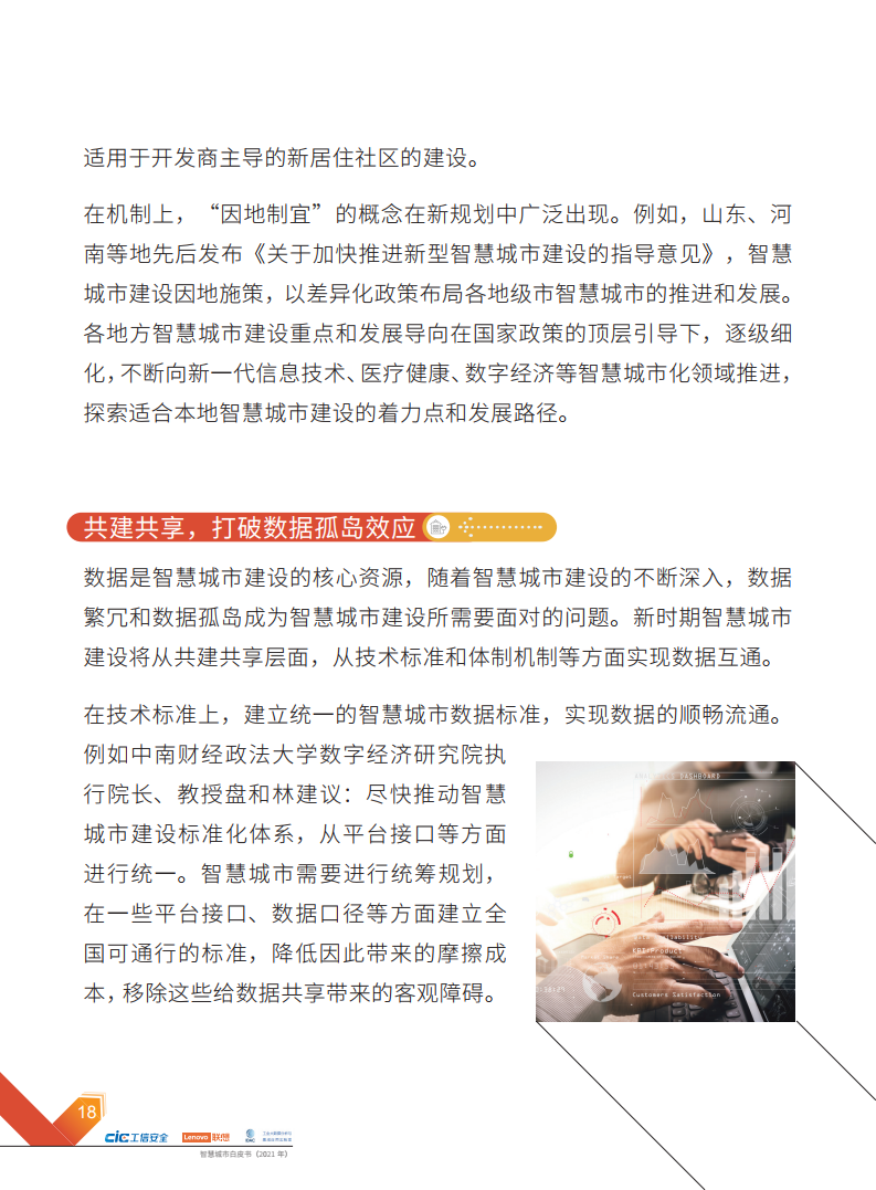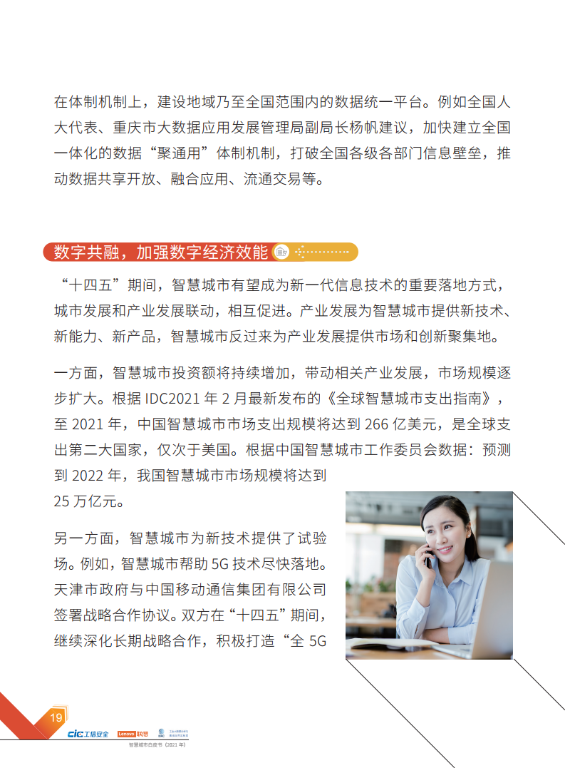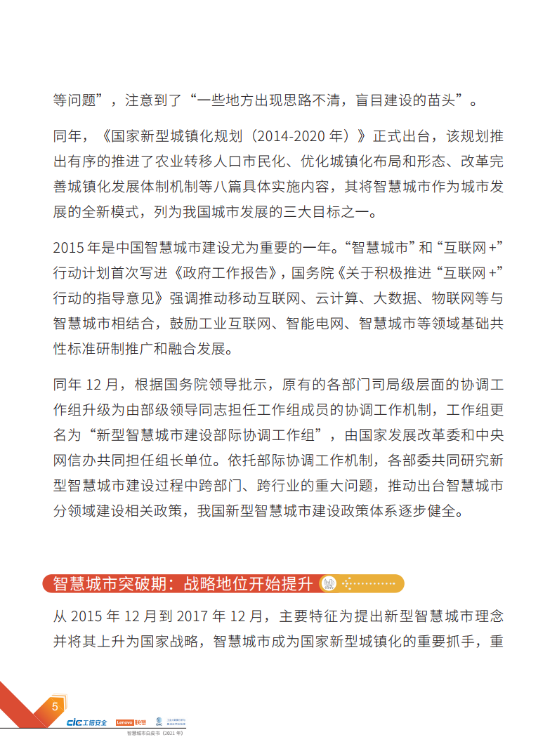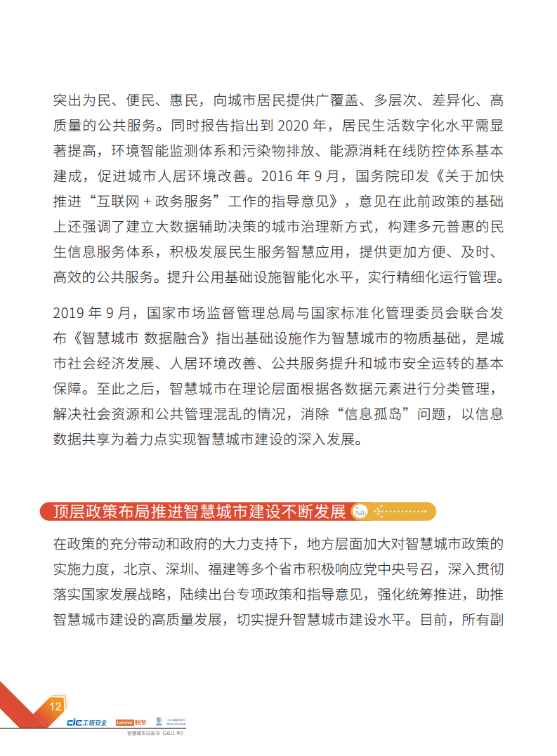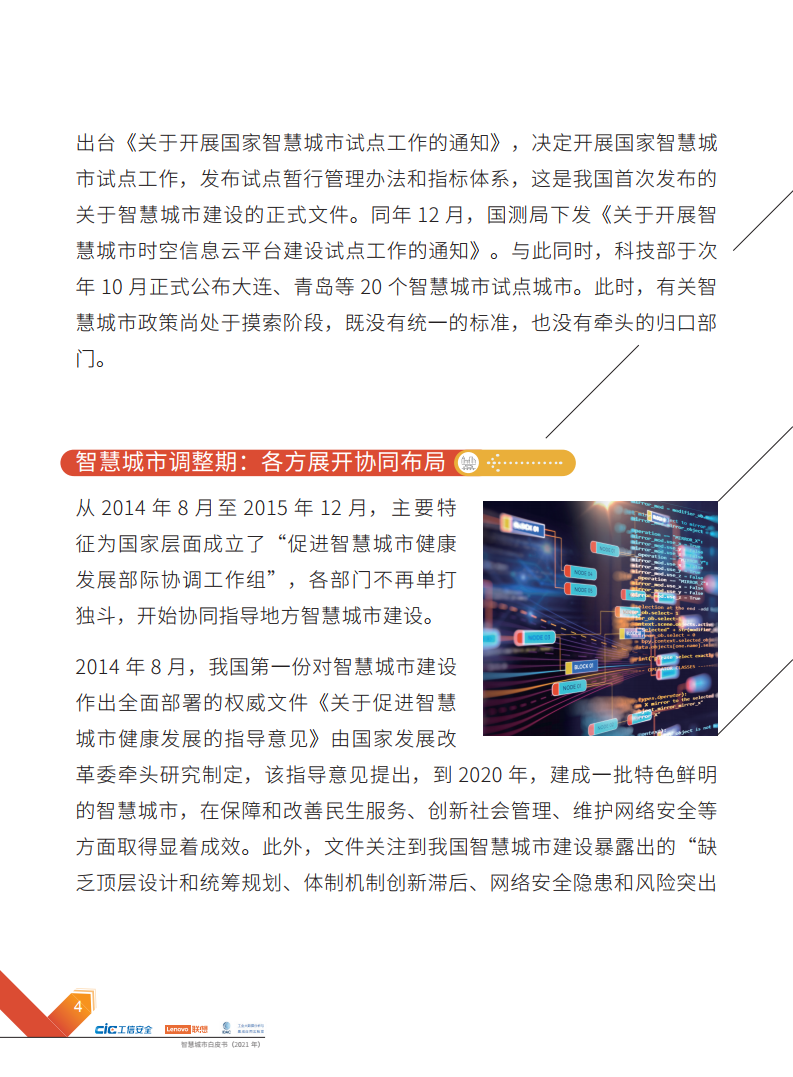 近日,由国家工业信息安全发展研究中心、联想集团、中国产业互联网发展联盟、工业大数据分析与集成应用实验室共同编制的《依托智慧服务,共创新型智慧城市——智慧城市白皮书(2021年)》(以下简称“白皮书”)正式发布。该白皮书采用案例分析、实证分析、调研分析等研究方法,深入剖析我国智慧城市发展历程与内在规律,针对智慧城市当前的发展情况,提出一系列智慧城市建设的新理念、新架构、新建议,旨在为建设应用技术先进、社会效益良好、生态环境友好的新型智慧城市提供参考。