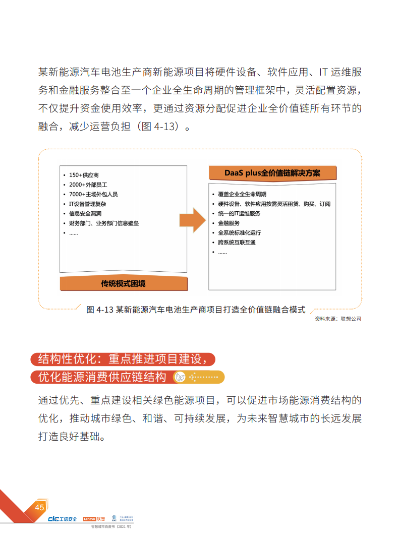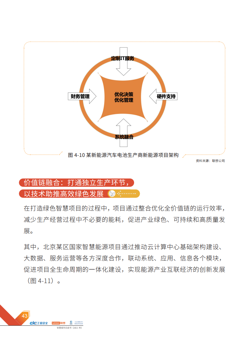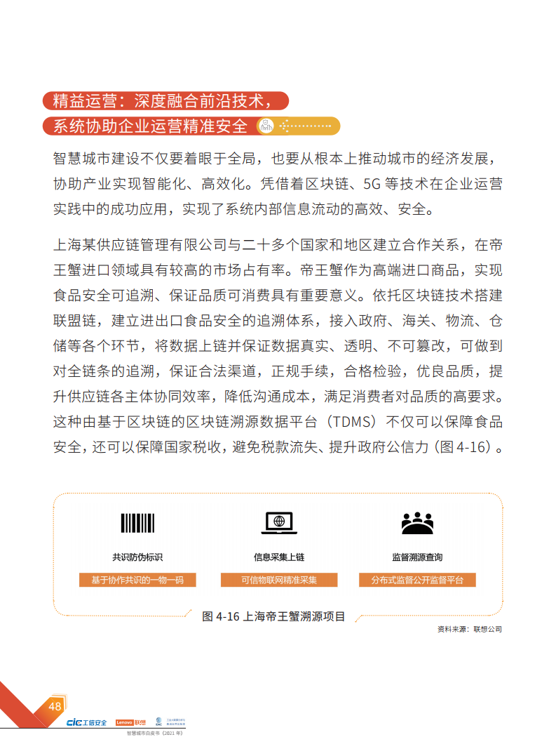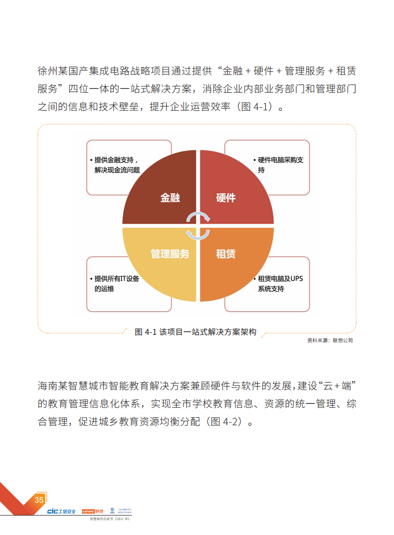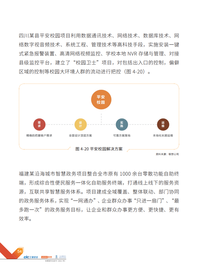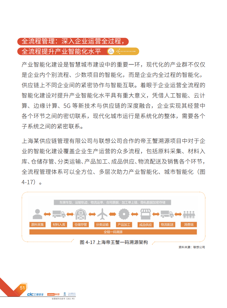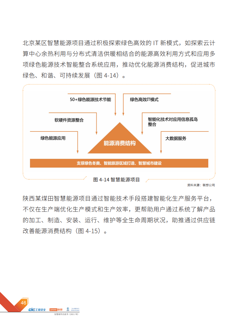 智慧城市建设是内涵型城镇化发展的重要方面,包括社会管理智能化、国民经济信息化、环境维护自动化和生活服务便捷化等内容。管理高效、服务便民、产业发展、生态和谐等均是新型智慧城市发展的目标方向。白皮书重点分析了文昌智能教育、延庆智慧能源、上海帝王蟹溯源等典型案例,展示了新型智慧城市在优政、兴业、惠民等方面取得的突出成效。据悉,联想凭借领先的IT运维服务经验和覆盖网络,智慧城市服务建设项目已在上海、江西、江苏、福建、湖北、海南、河北等全国多个省市落地,涉足绿色能源、社会治安管理、城市应急管理、智慧教育、智慧交通、食品安全以及智慧政务等多个细分场景。在白皮书编制过程中,联想为智慧城市建设运营实践和案例调研提供了支持。