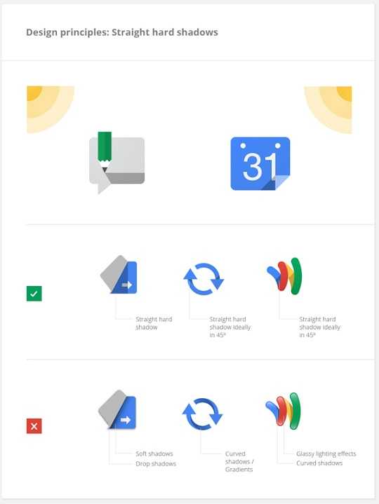 设计准则:直线阴影——通过阴影来表现立体质感的时候,使用直线的阴影,杜绝渐变或是曲线的阴影,这也是“简化思路”的实践。