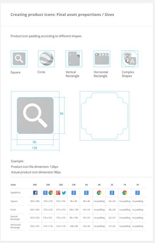 产品icon创作要求:尺寸和比例——和Apple不同,Google并不强求圆角矩形式的大统一,而是通过一些技巧去均衡排列整齐和原生比例两大属性,比如在一些icon设计的时候,因为迁就本身的形状,从而会在边框上做出一些留白,但是就icon的完整尺寸来讲,看起来大小不一的icon们,其实是同样的尺寸,Google不希望为了填满而去填满空间。