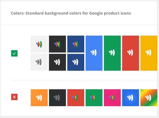 色彩:背景标准——对于产品icon能够适配什么颜色的背景,Google也有着严格的标准制定。