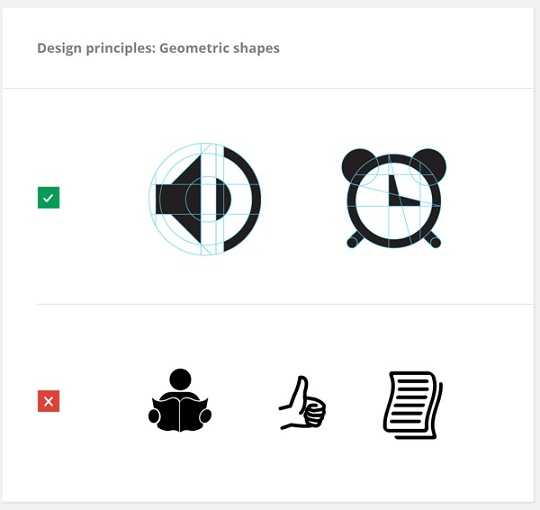 设计准则:几何图形——同样,严格的几何尺度也是构成Google在用户界面的icon的基础,潦草、率性、手绘等类型的icon在Google这里行不通。