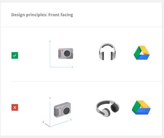 设计准则:保持正面——“Z轴”在Google的设计风格中是大忌,立体的视觉效果可以通过阴影等元素来体现,过于拟物和真实有违Google的数字基因。