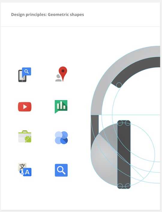 设计准则:几何图形——Google认为几何图案是科技领域的最佳表现,既不失工业、理性,也能发挥一定的创意。