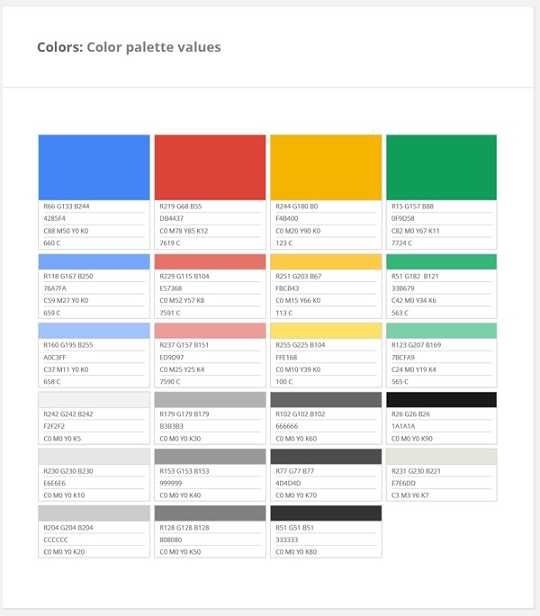 色彩:调色标准——出于极客的本质,Google也对调色行为做了标准化的制定,以求设计上的一致性。
